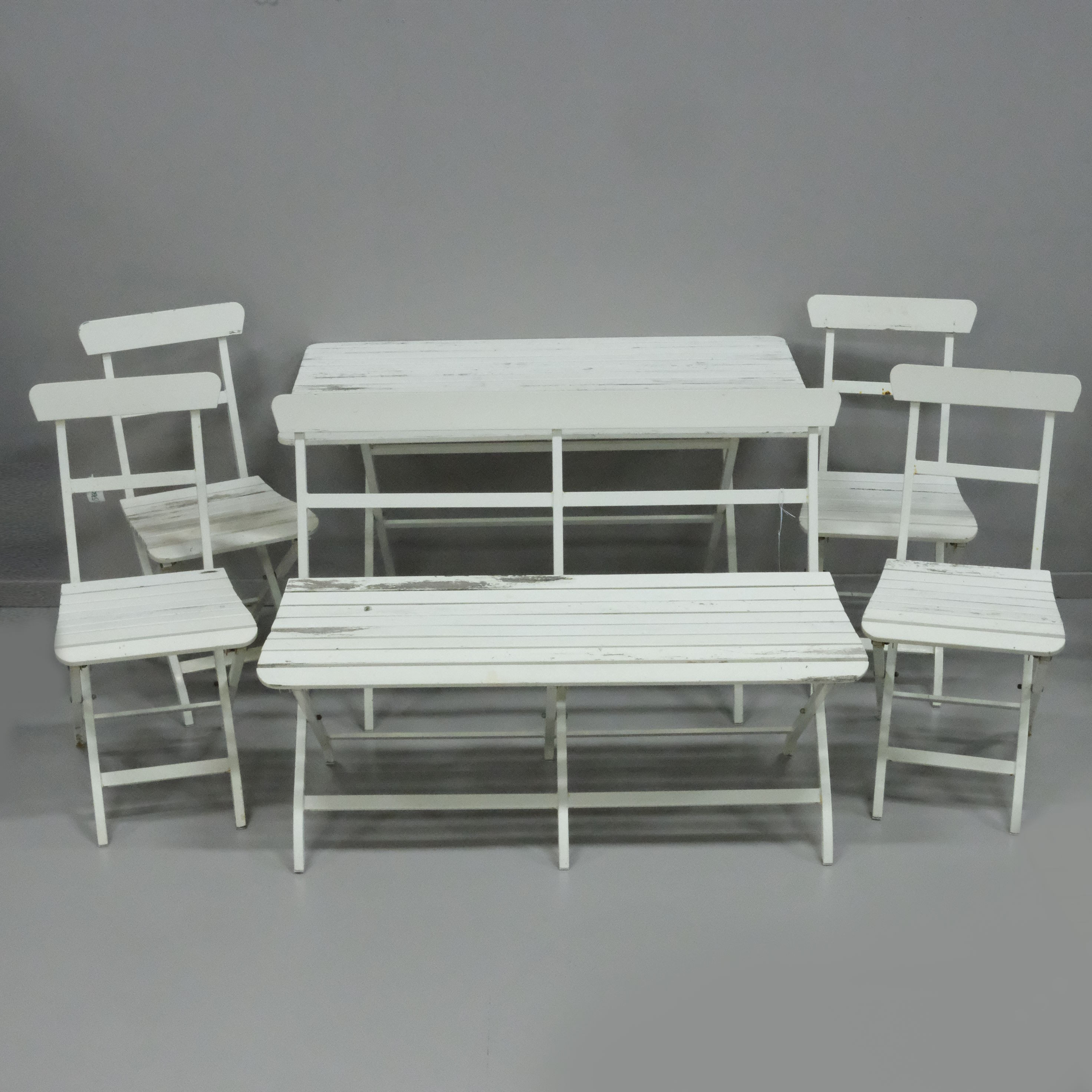 2968233. GARTENMÖBEL, SECHS STÜCK, WEISS LACKIERT.