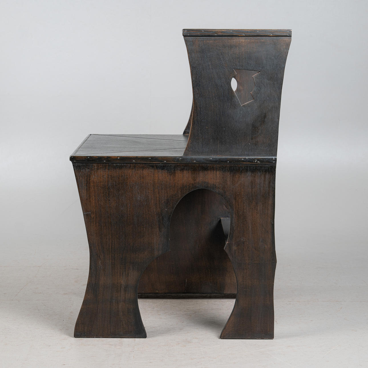 Altersgemäße Gebrauchs- und Reibespuren, partiell stärkerer Lasurabrieb sowie geringfügige Kratzer, Sitzfläche mit stärkeren Kratzern und Abrieb.