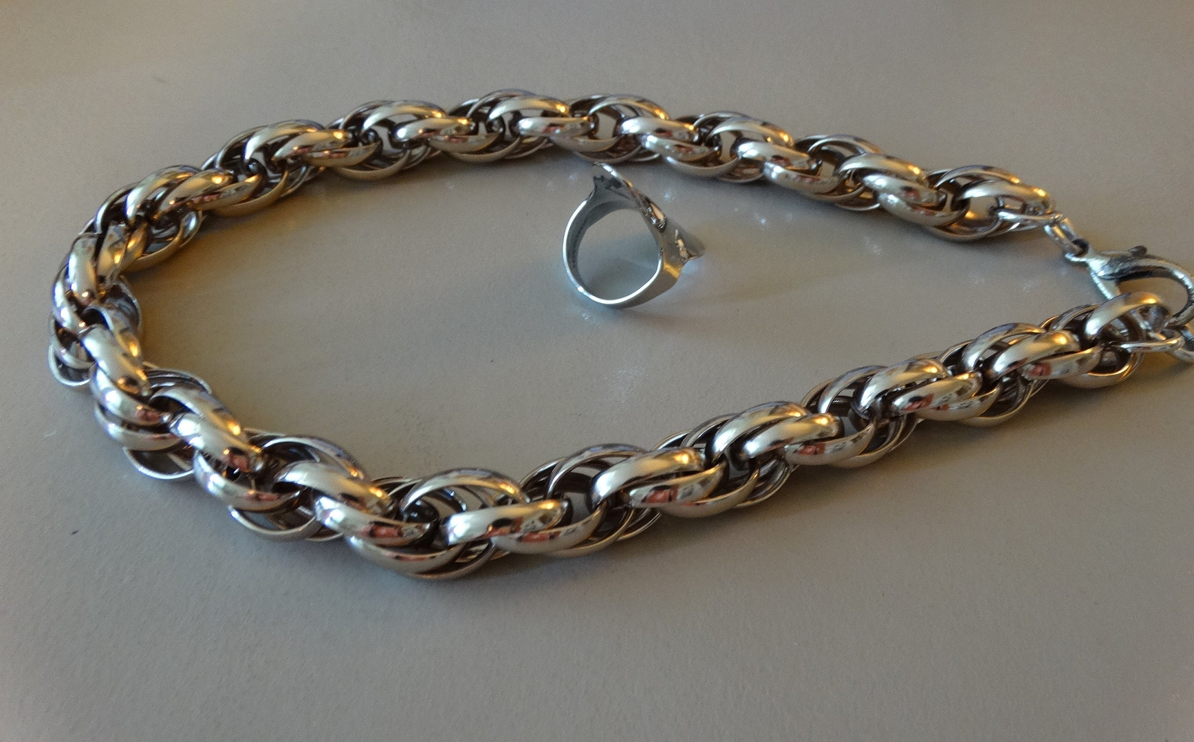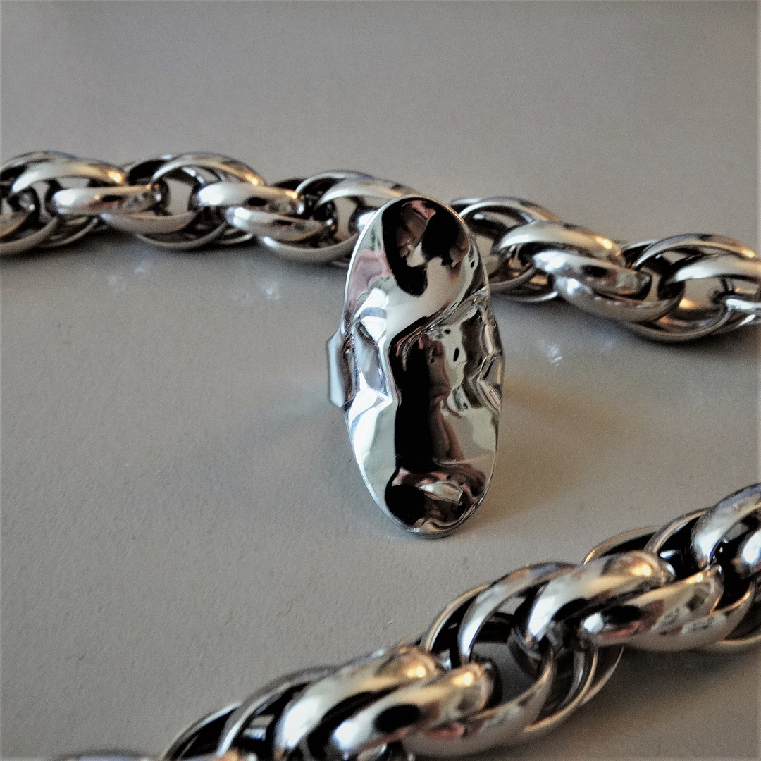 2972950. EIN DYRBERG/KERN RING, eine Modeschmuck Kette, silber farben.