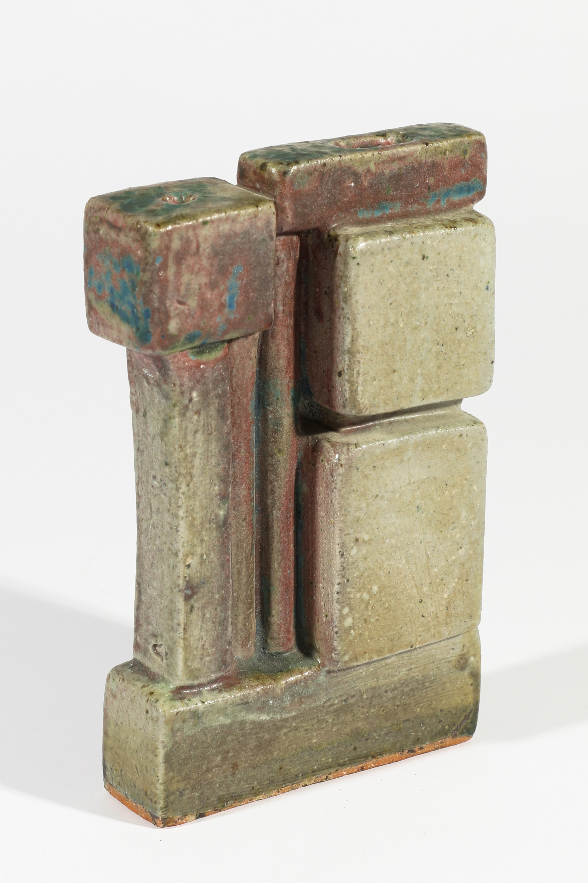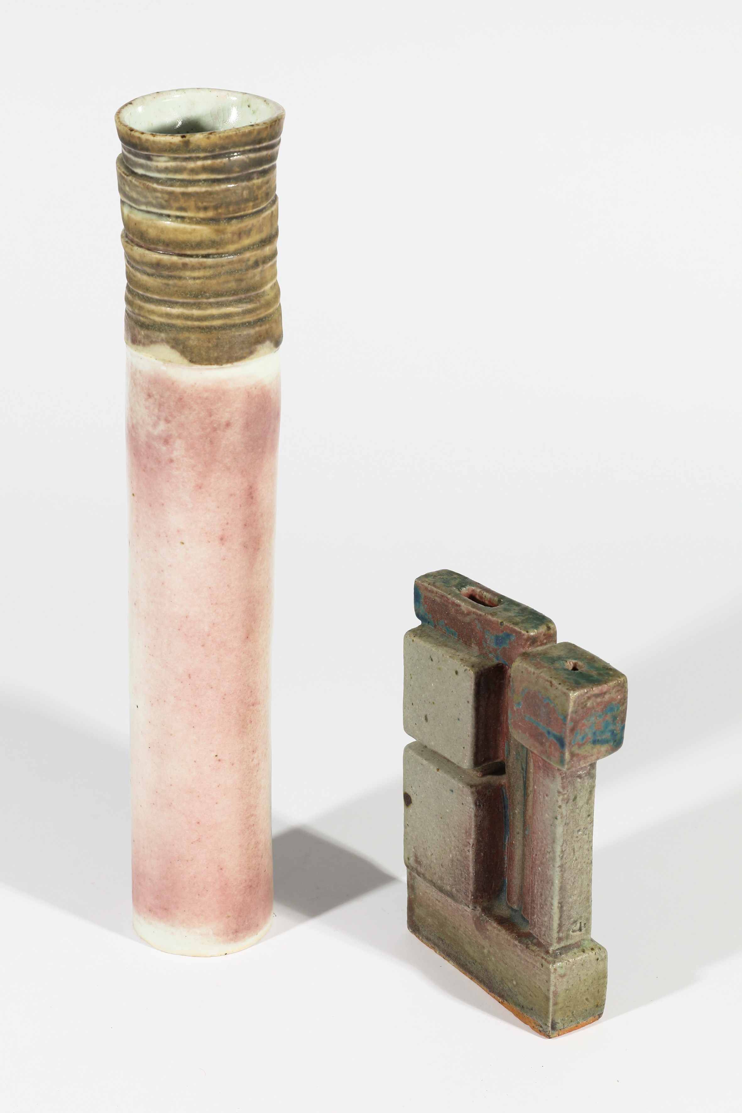 2974461. BRUNO & INGEBORG ASSHOFF. Steingutvase + rechteckige Vase (170-10).