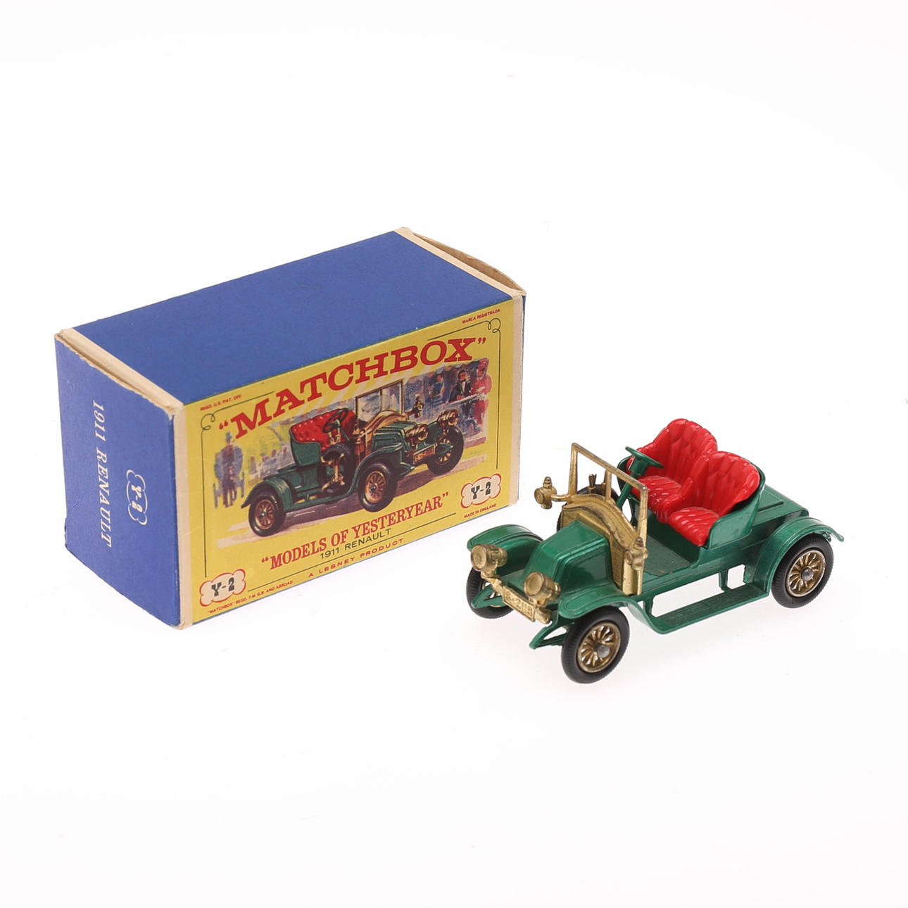 Boxer, Holz, Wakouwa, USA, Höhe 13,5 cm. Auto Renault 1911 Matchbox, England, Länge 7,5 cm.