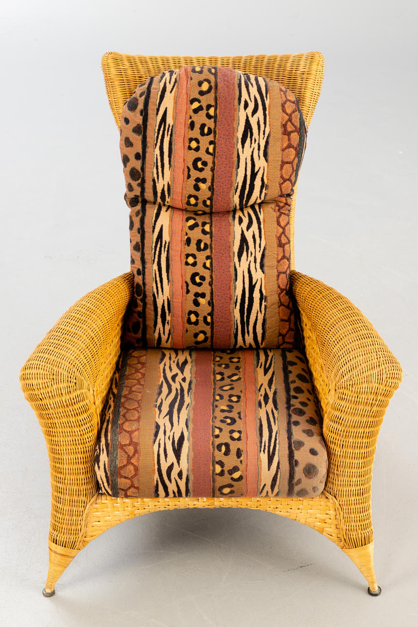 Rolf Benz. Rattan Korbsessel mit Hocker.