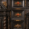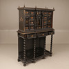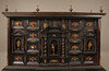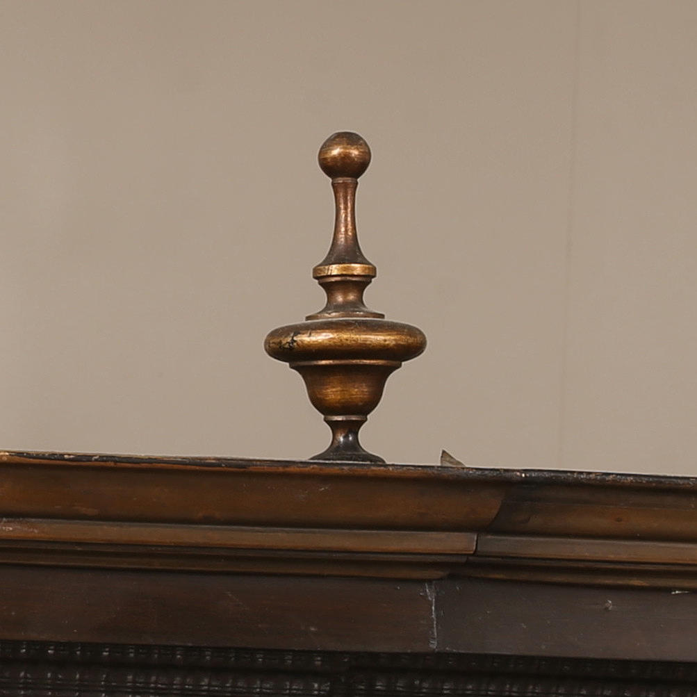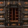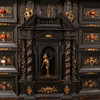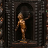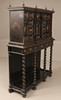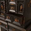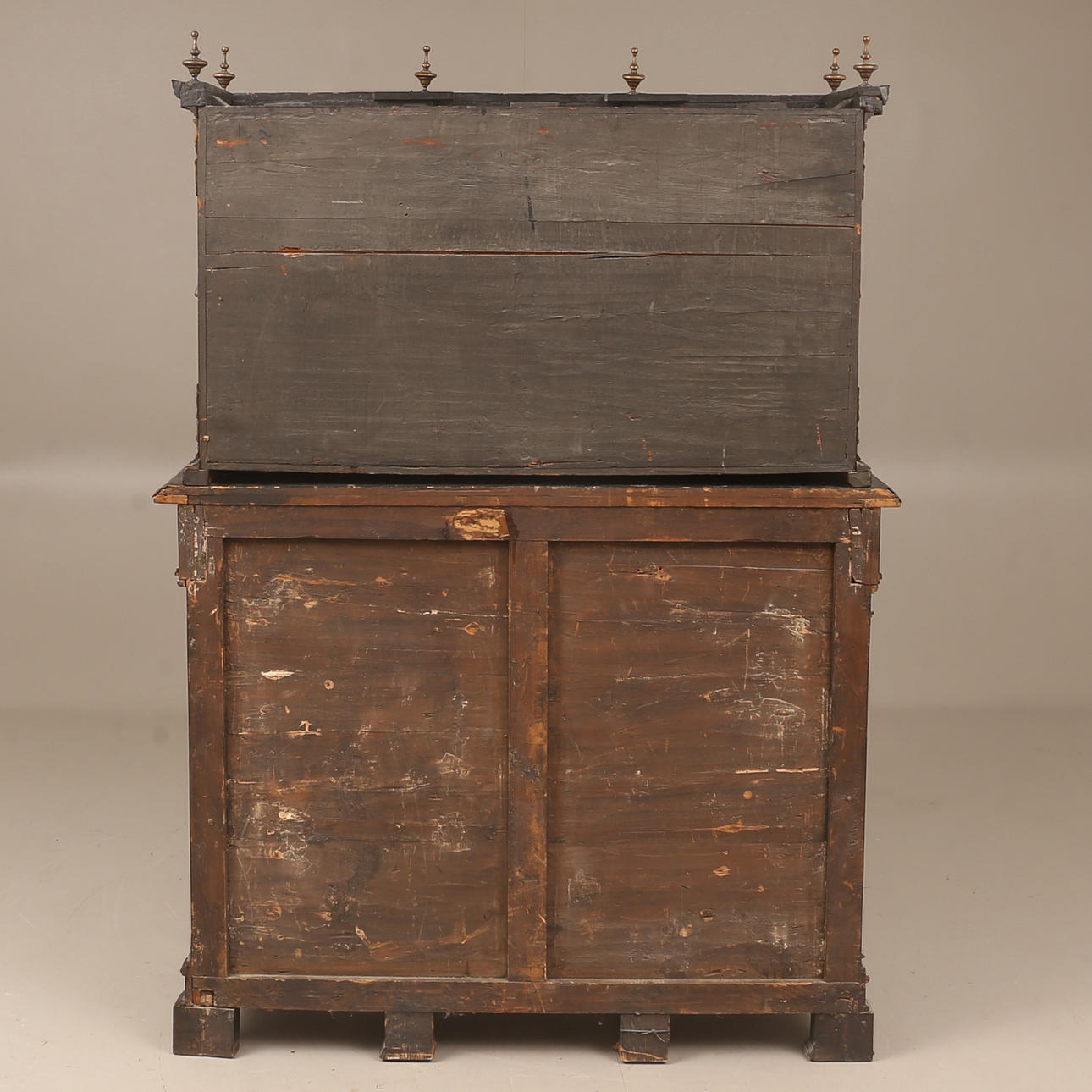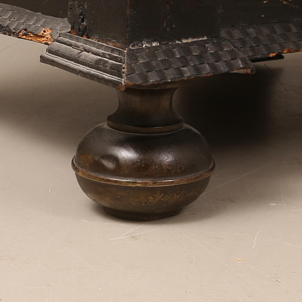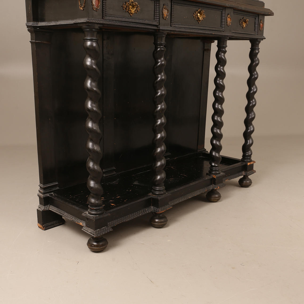 Tablett aus Ahorn. Schrankschränke, furniert mit Ebenholz, Achatsteinen, Knospen, Beinen und vergoldeten Figuren aus Bronze.