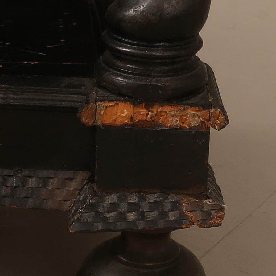 Risse, einige Listen fehlen. Renoviert und ergänzt. Späteres Fahrgestell/Beinständer.