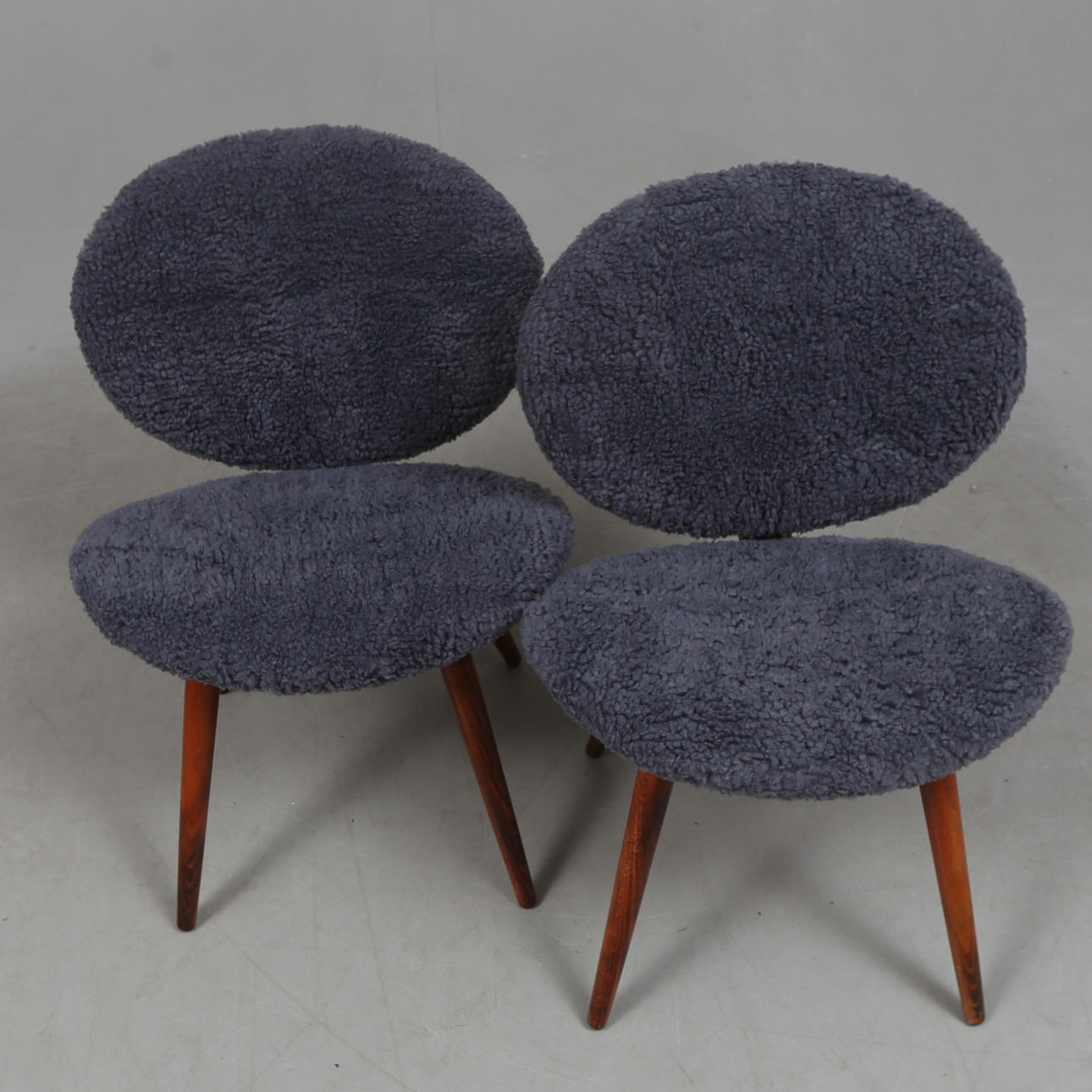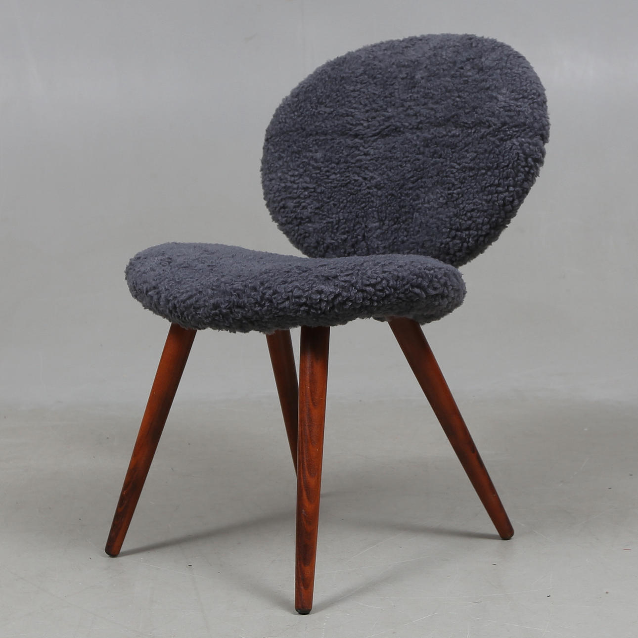 Gepolsterte und gepolsterte Rückenlehne und Sitzfläche. Beine aus gebeizter Buche. Sitzhöhe 37 cm.