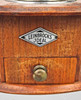 Antike Kaffeemühle der Marke *Leinbrocks Ideal* quadratischer Holzkorpus, inneliegendes Mahlwerk mit Kurbelantrieb, Höhe ca. 24 cm, gut erhalten, 1920er Jahre.