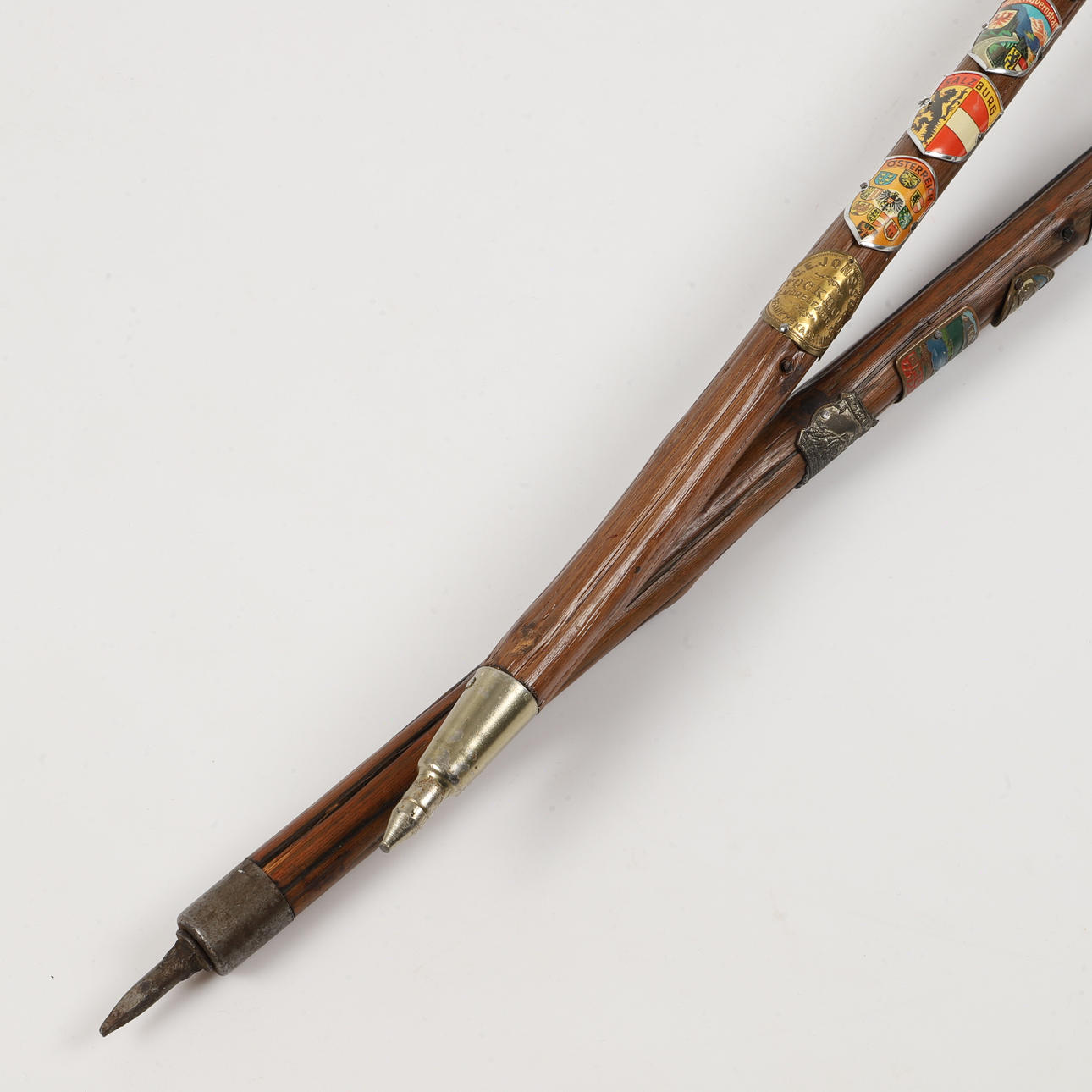 2990935. WANDERSTÖCKE UND EISPICKEL, geschnitzte Holzarbeiten mit Plaketten.
