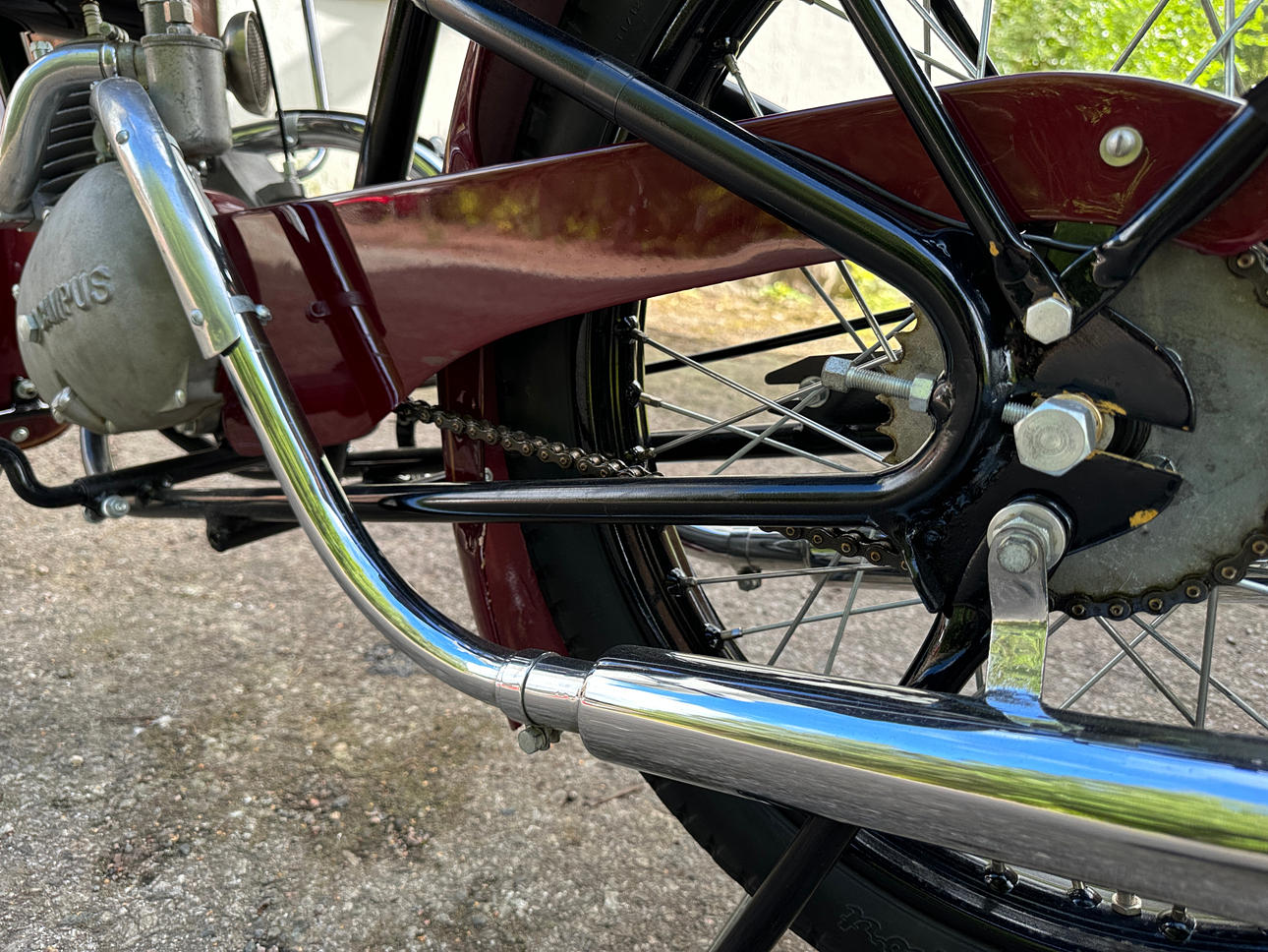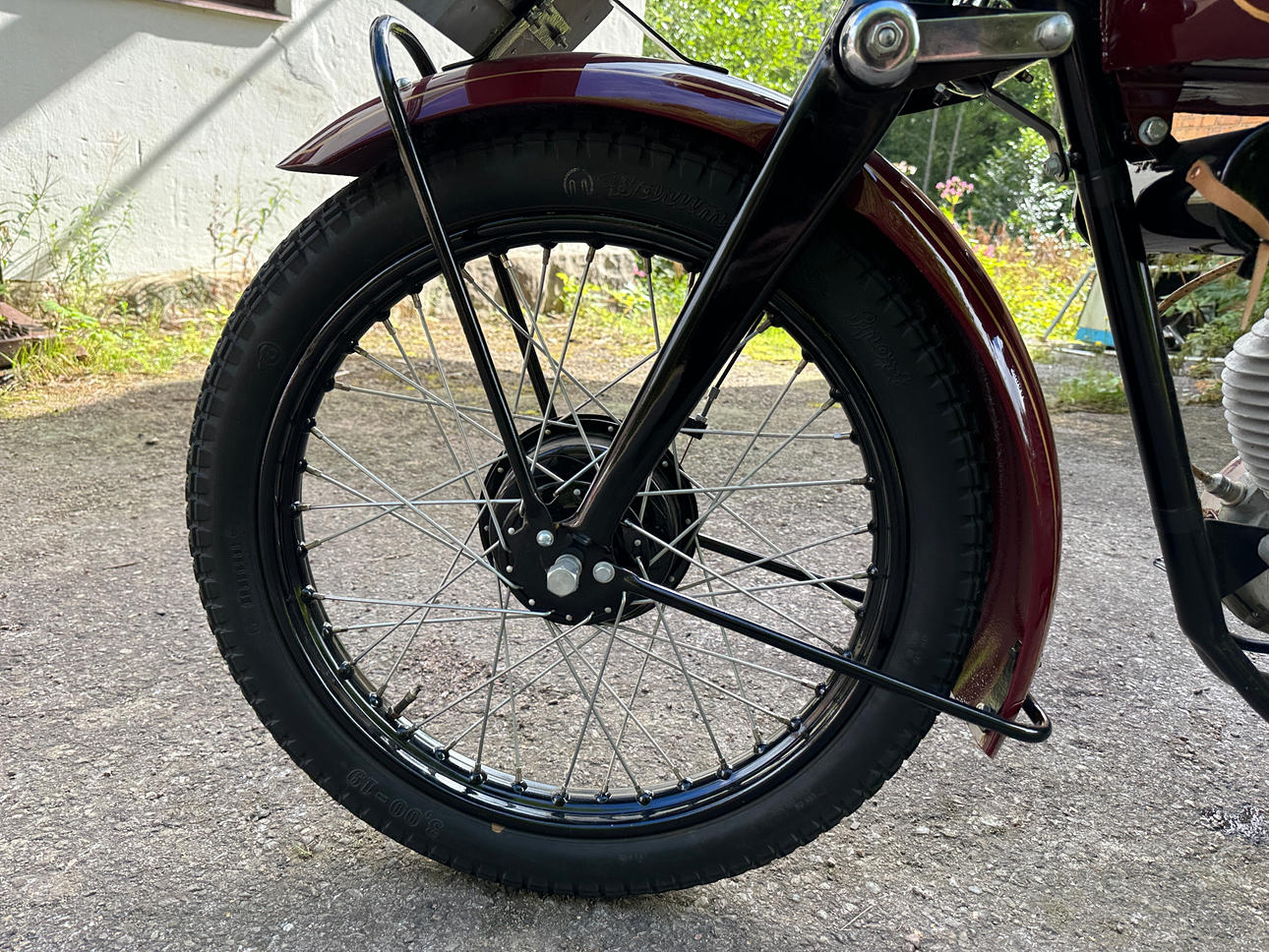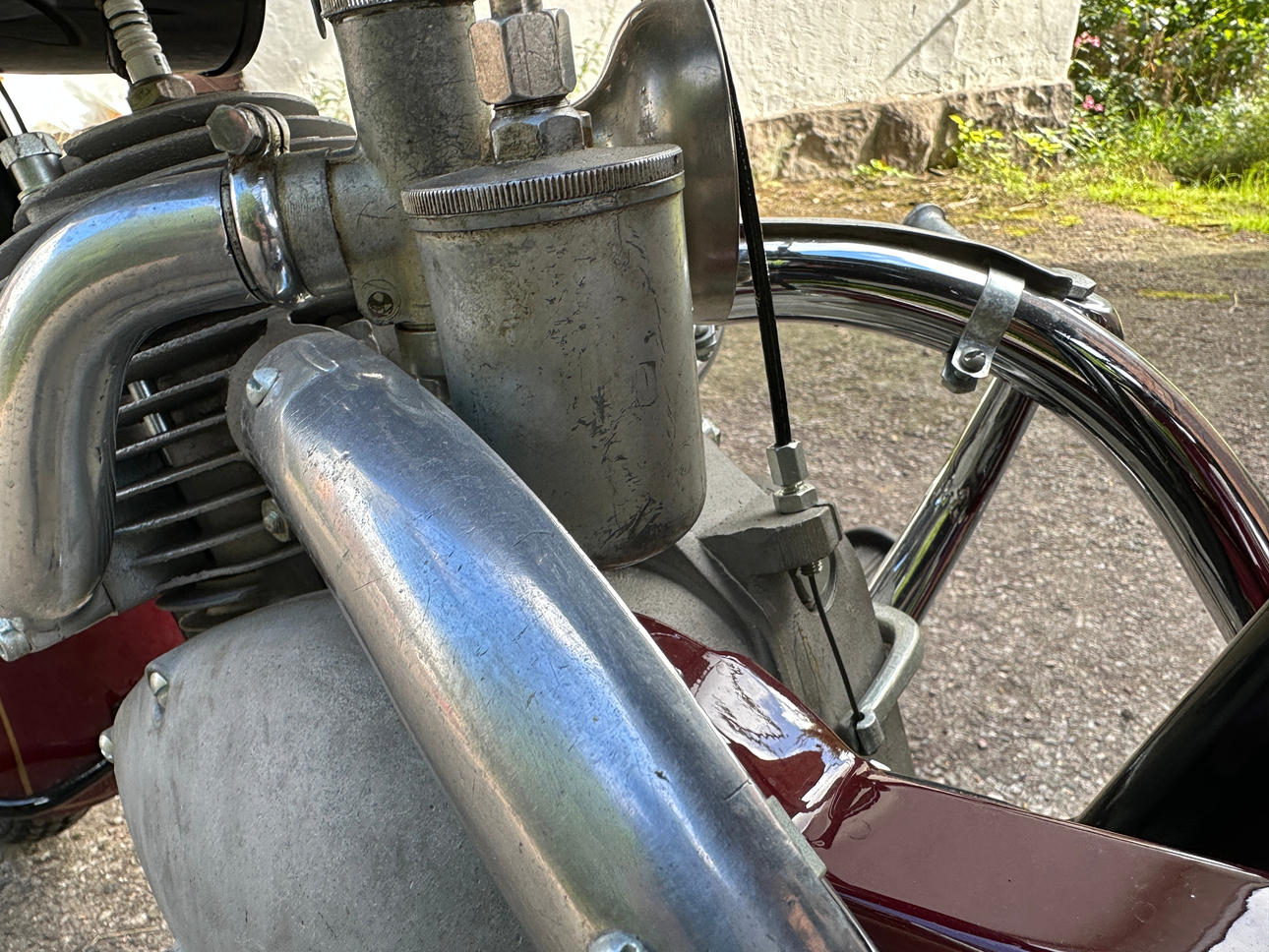 Modelljahr: 1950, Registrierungsnummer: S9013, Rahmennummer: TS246, Motor: 1-Zylinder, 2-Takt, 210 cm³, Motornummer: TS246. Hat einen alten schwedischen Titel.
