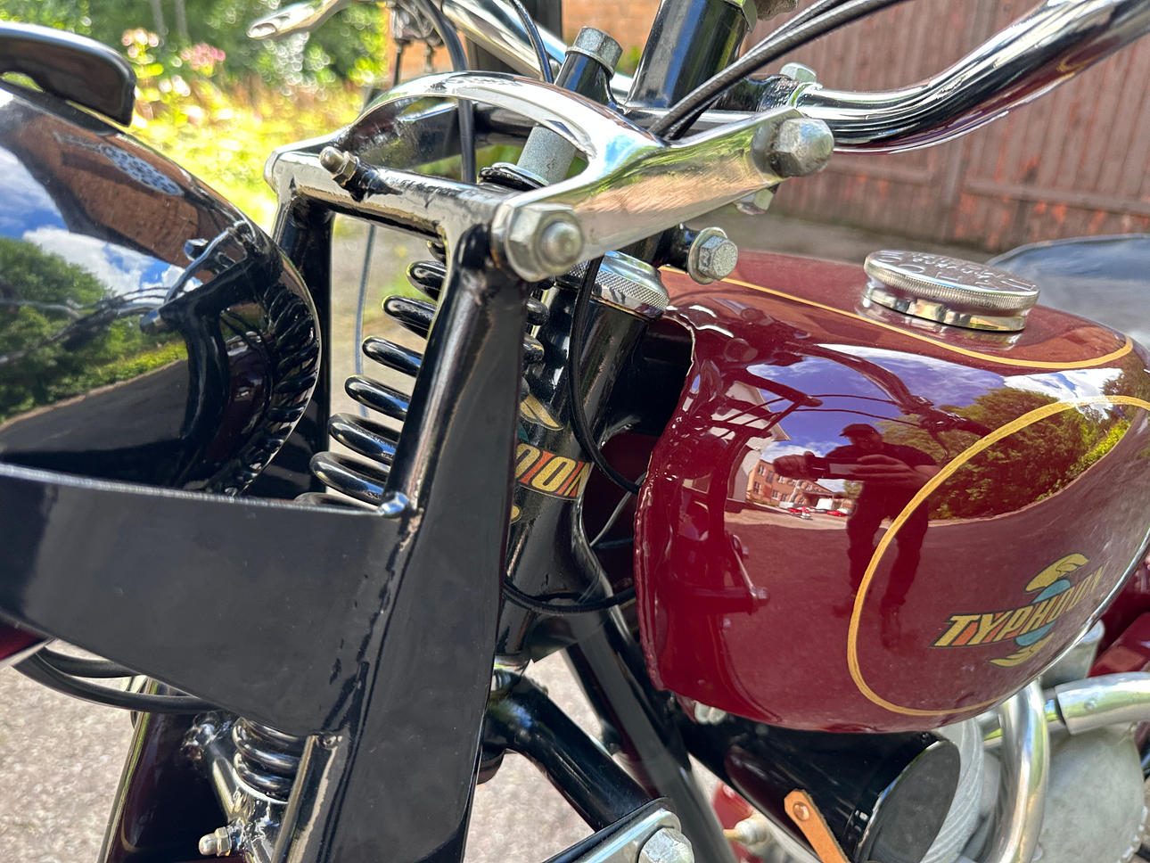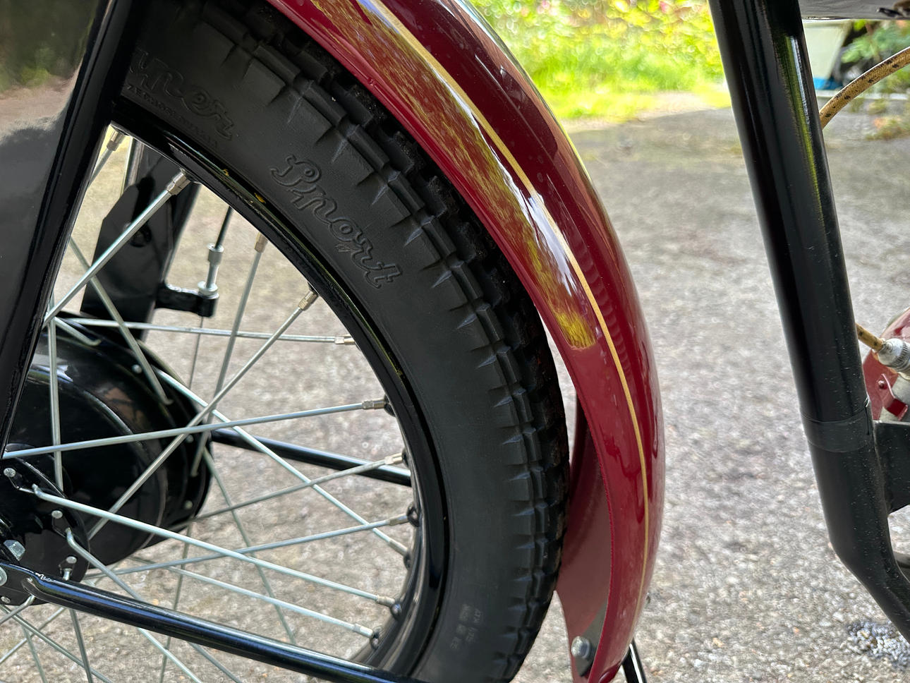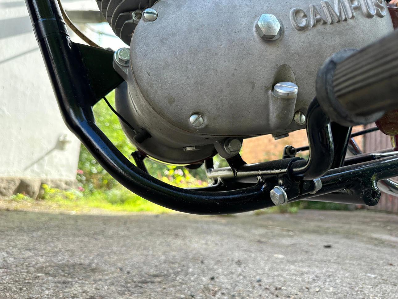 Modelljahr: 1950, Registrierungsnummer: S9013, Rahmennummer: TS246, Motor: 1-Zylinder, 2-Takt, 210 cm³, Motornummer: TS246. Hat einen alten schwedischen Titel.