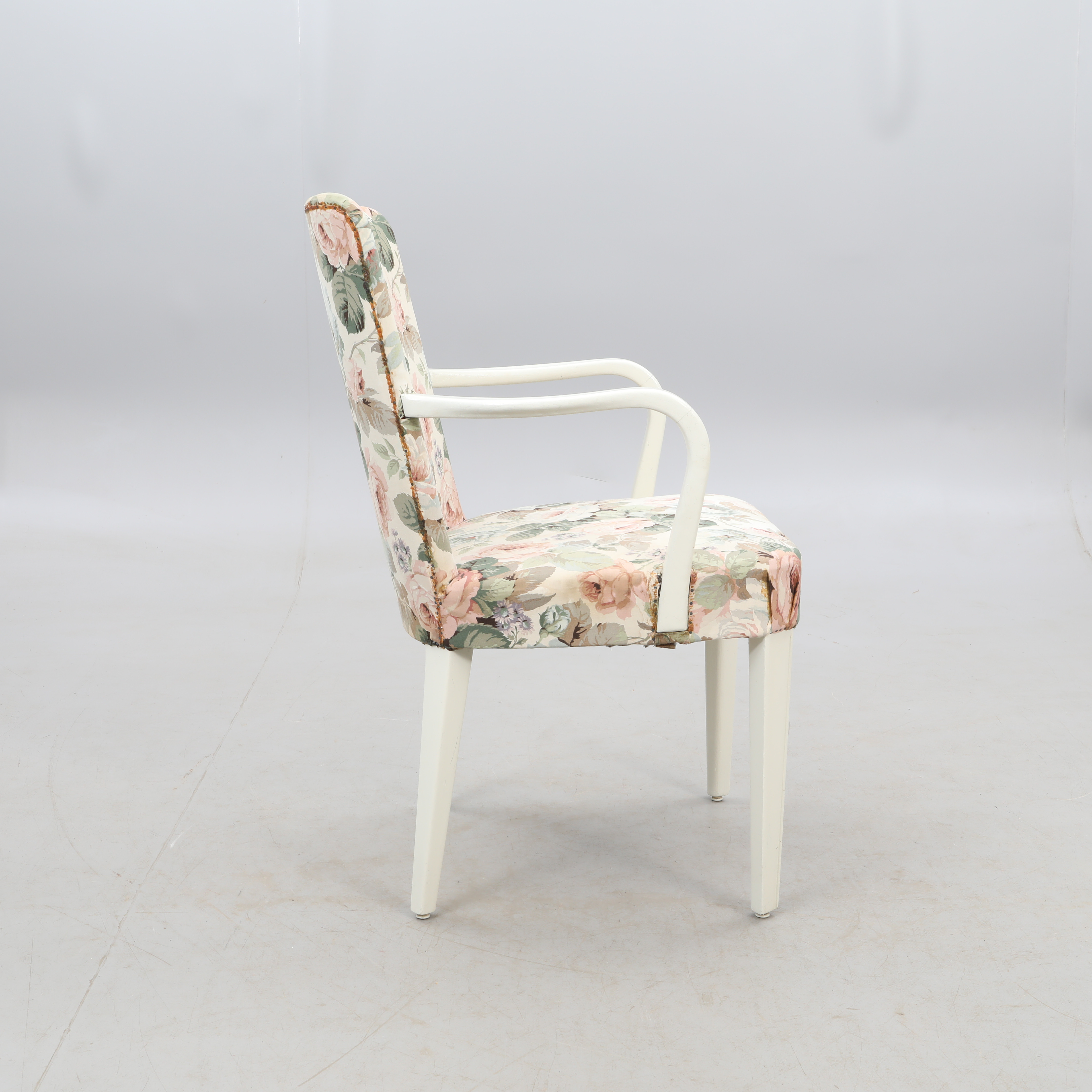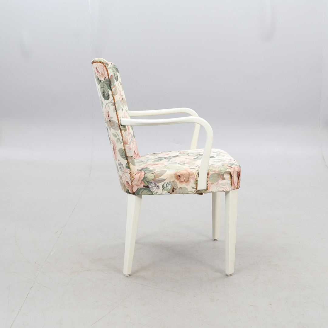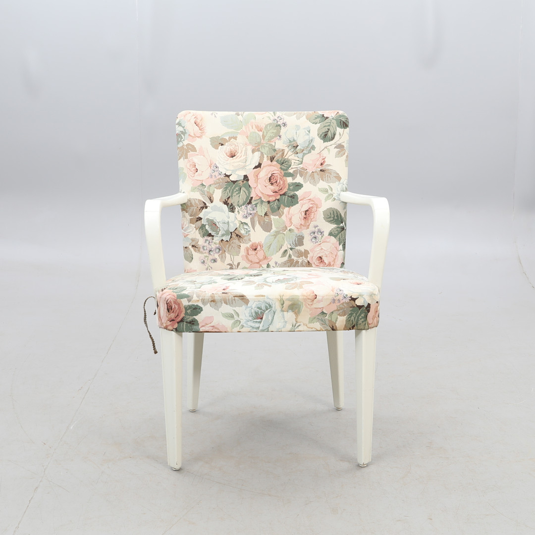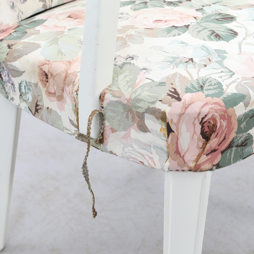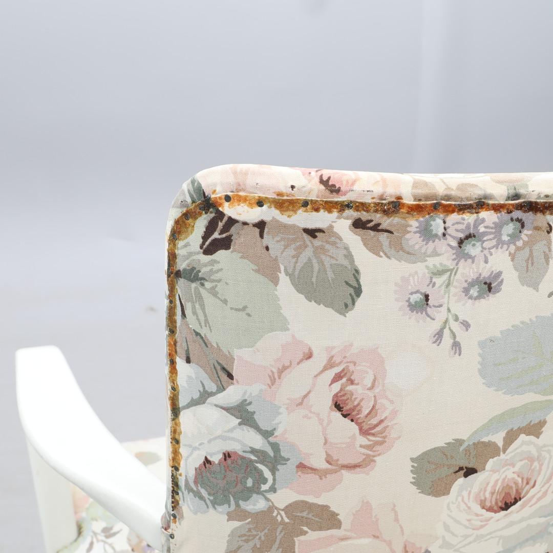 2992253. SESSEL, weiß mit floralem Stoff.