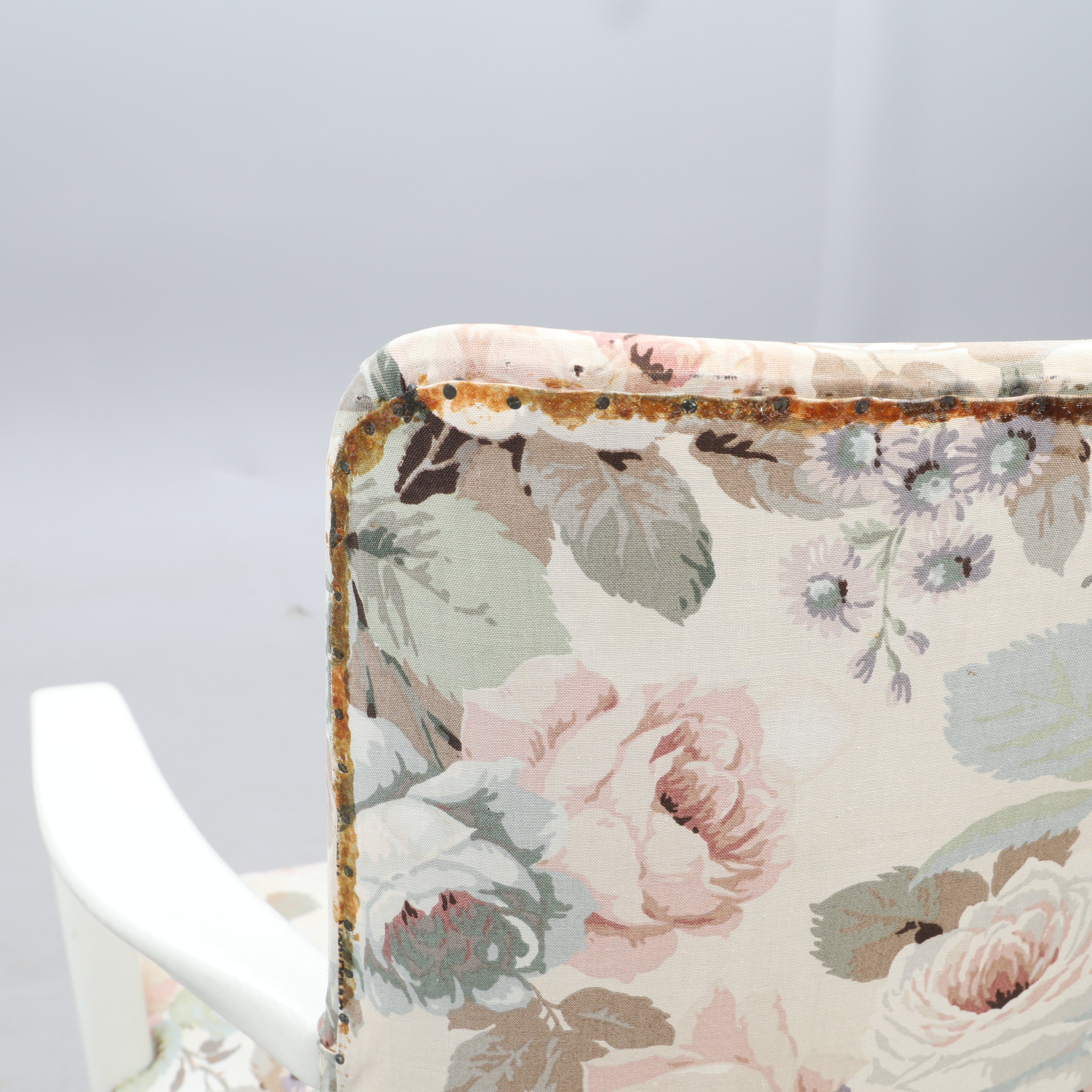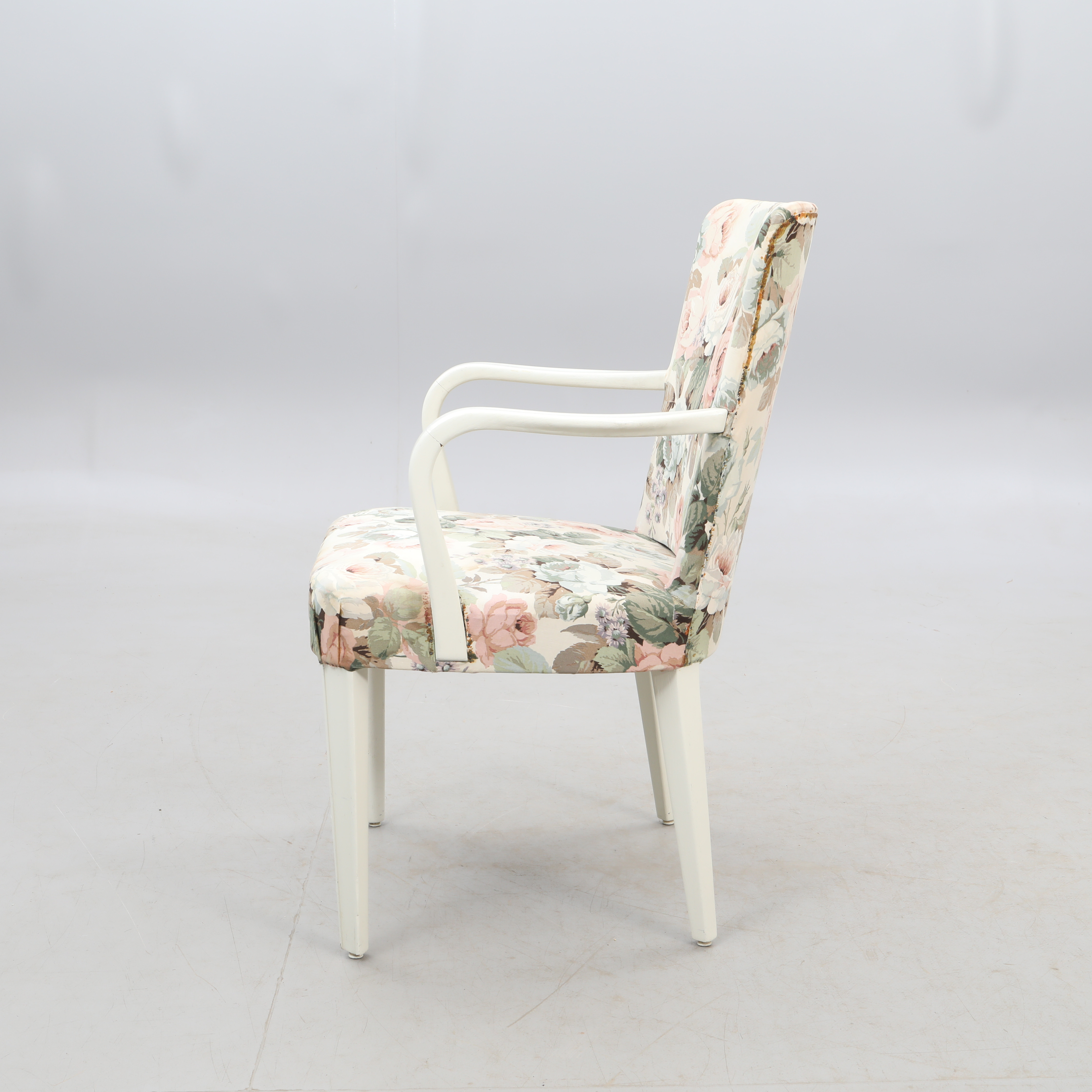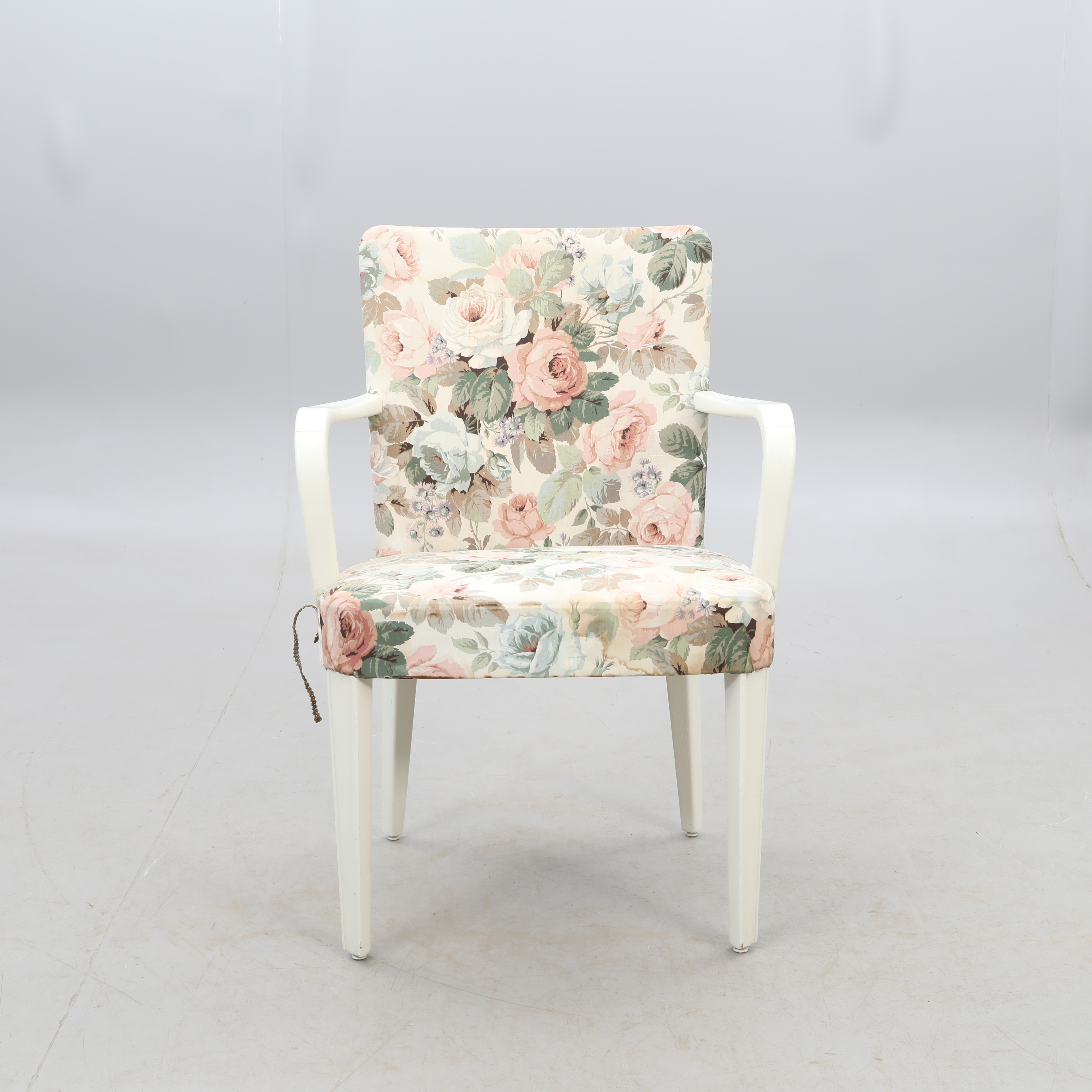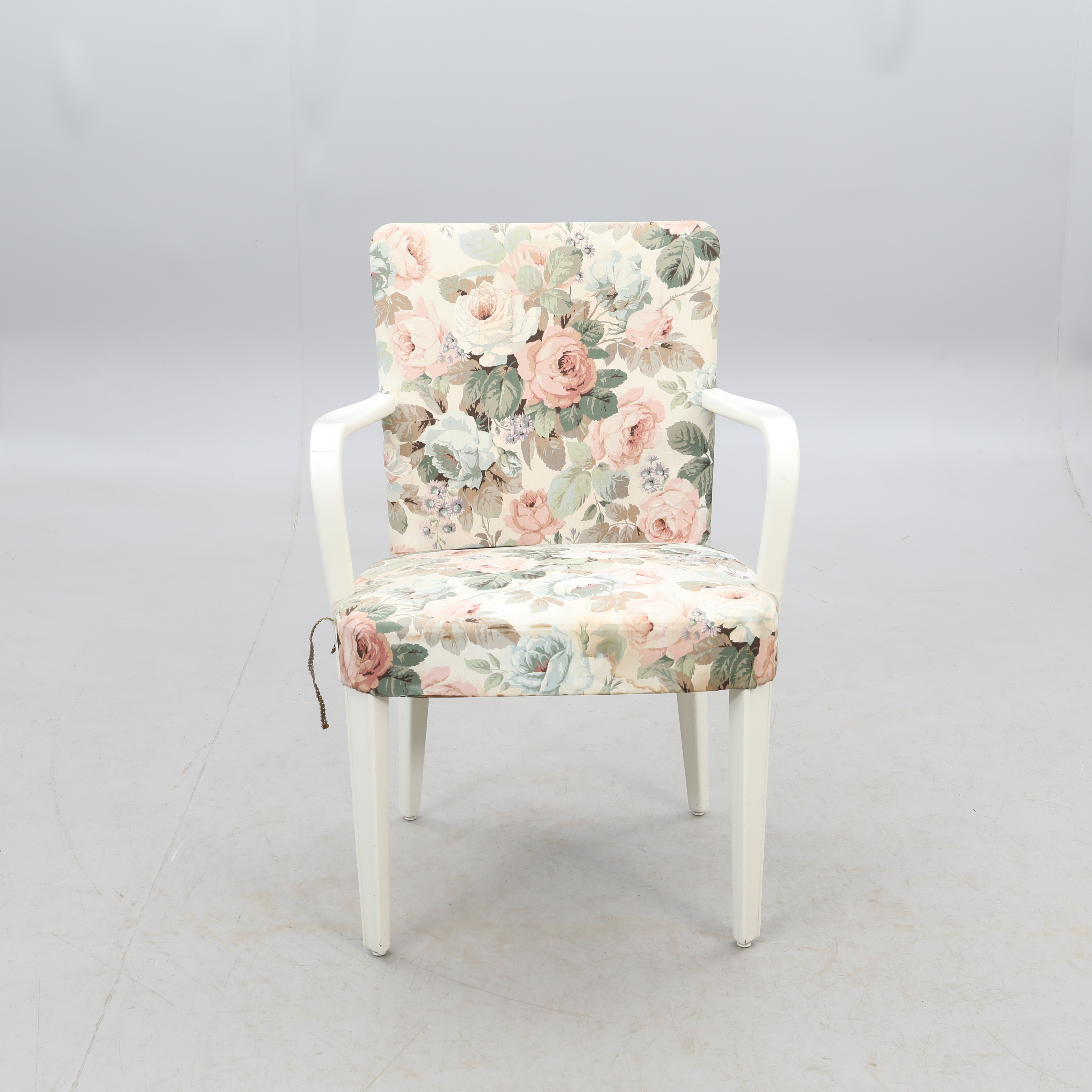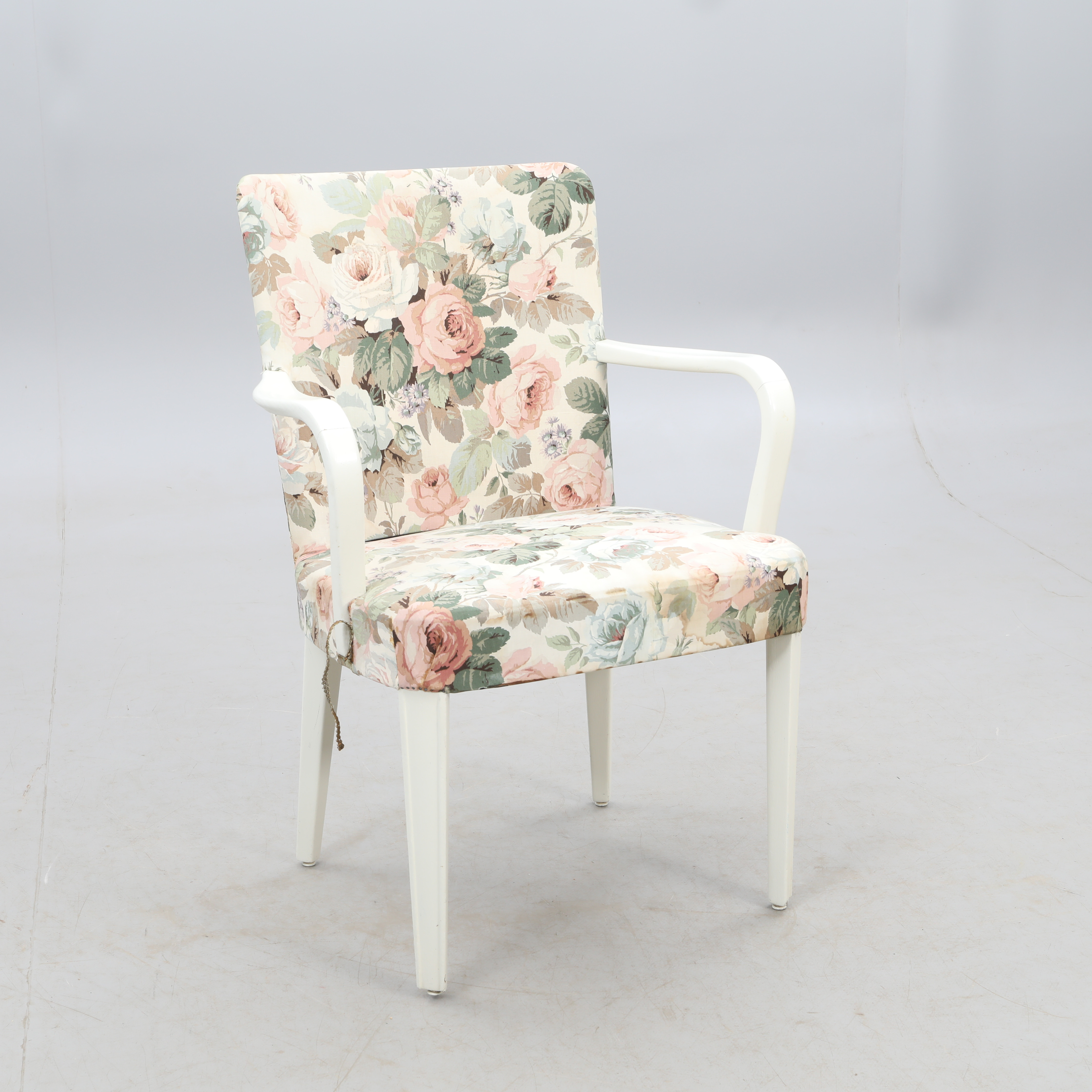 2992253. SESSEL, weiß mit floralem Stoff.