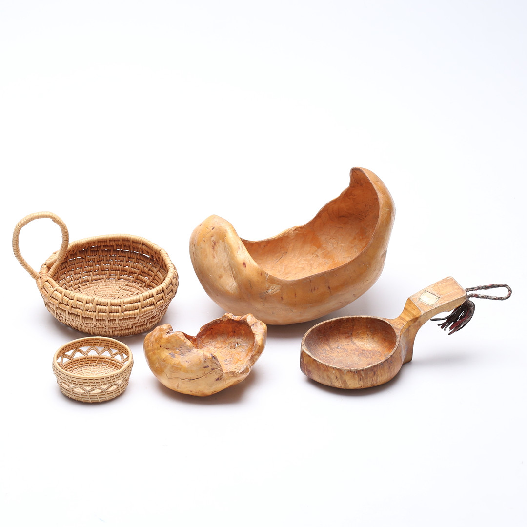 2993499. HOLZGEGENSTÄNDE/KORBARBEIT, 5-teilig.