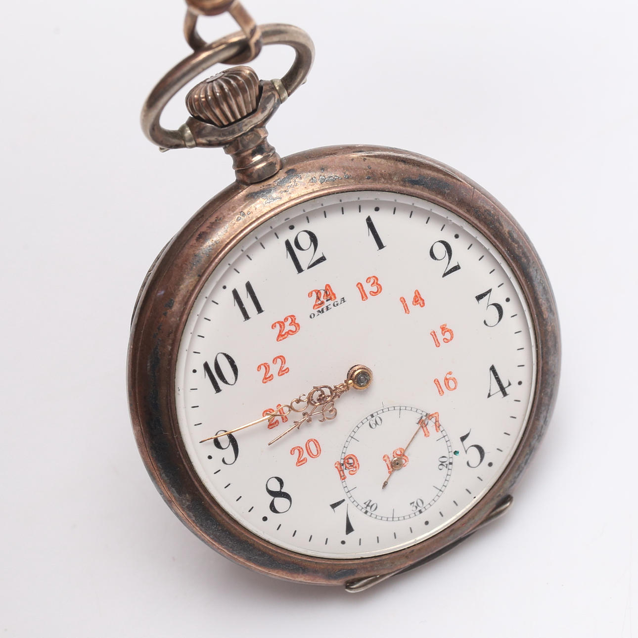 TASCHENUHR mit KETTE, Silber, Messing, Gold, Omega.