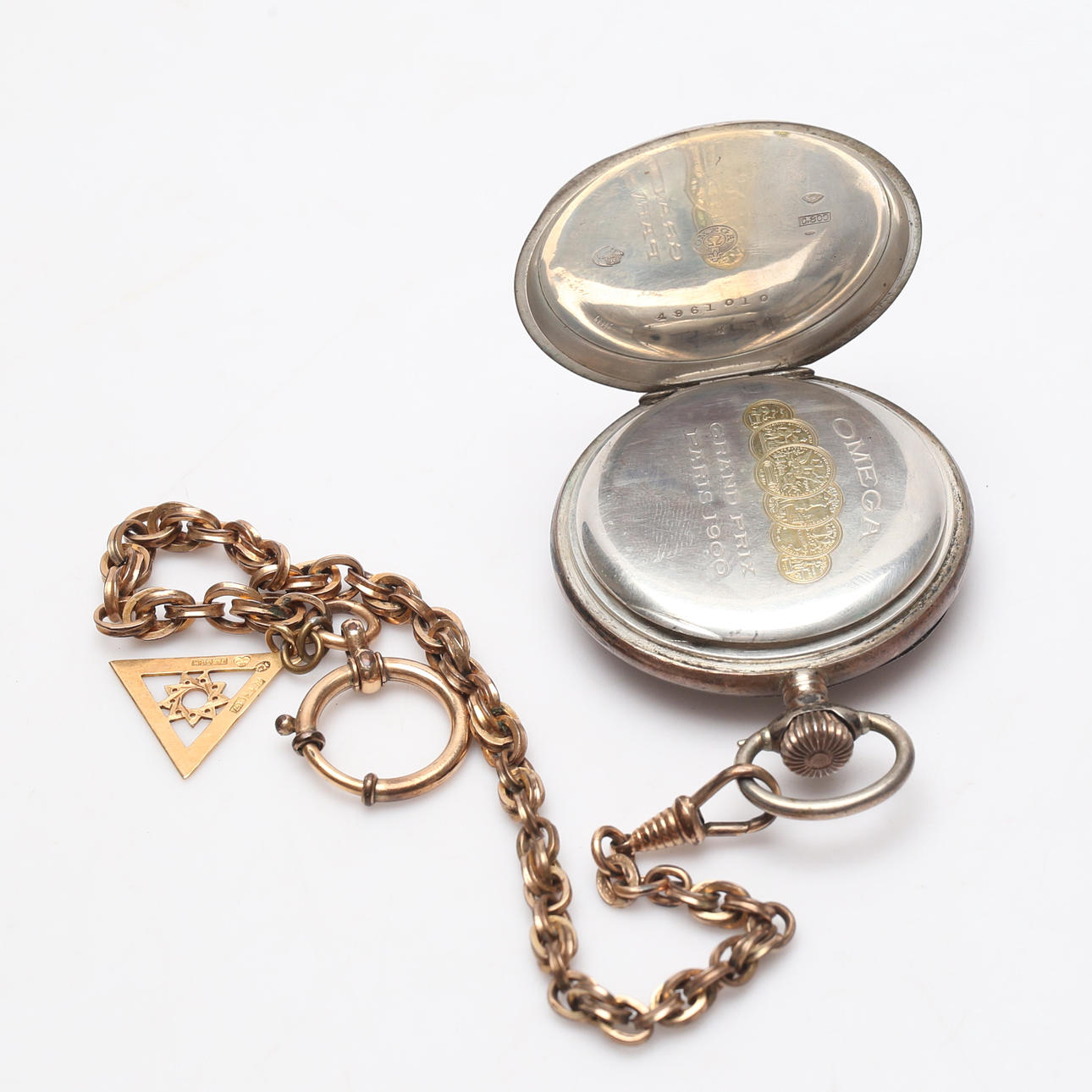 2993571. TASCHENUHR mit KETTE, Silber, Messing, Gold, Omega.