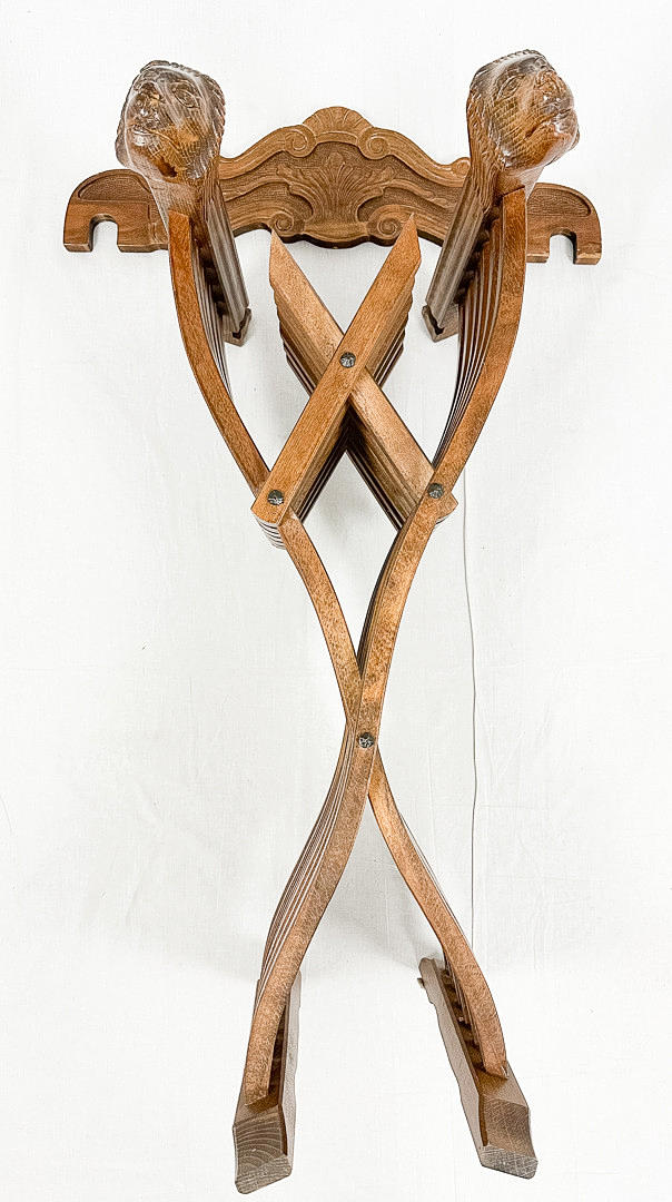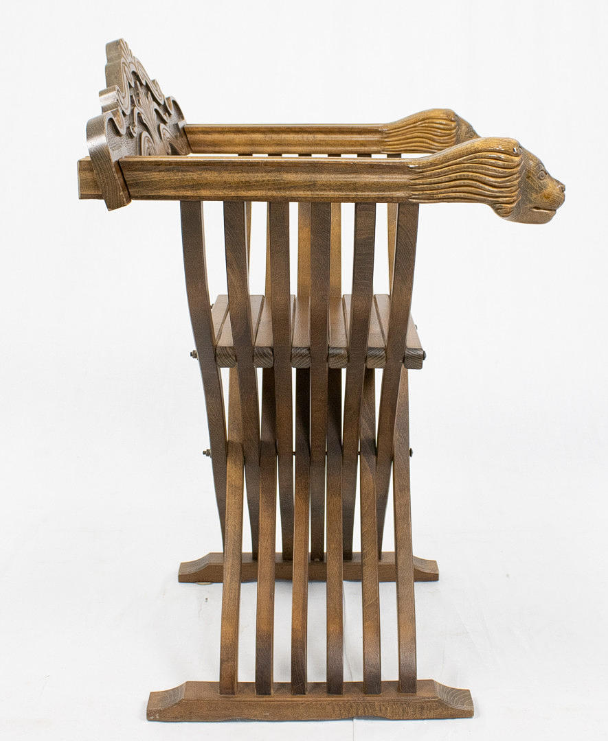 Löwenkopf auf der Armlehne. Sitzhöhe 46 cm, Rückenhöhe 82 cm, Breite 63 cm.