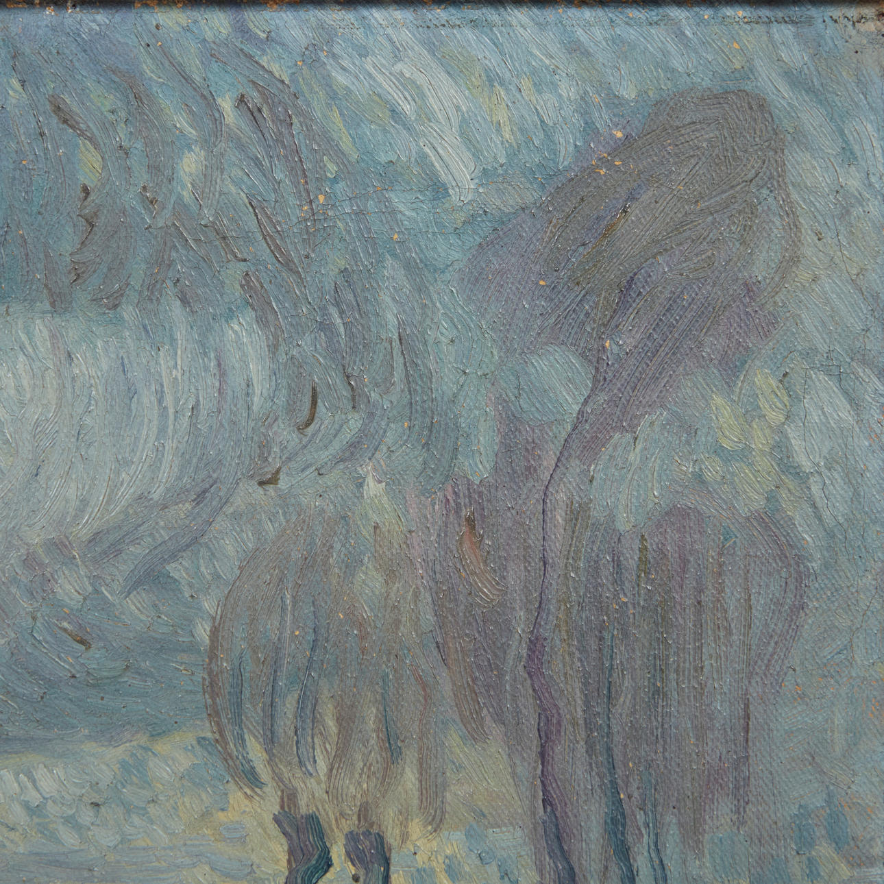 Firnisbildung sowie rechts wurde die Leinwand leicht krakeliert und straff gezogen.