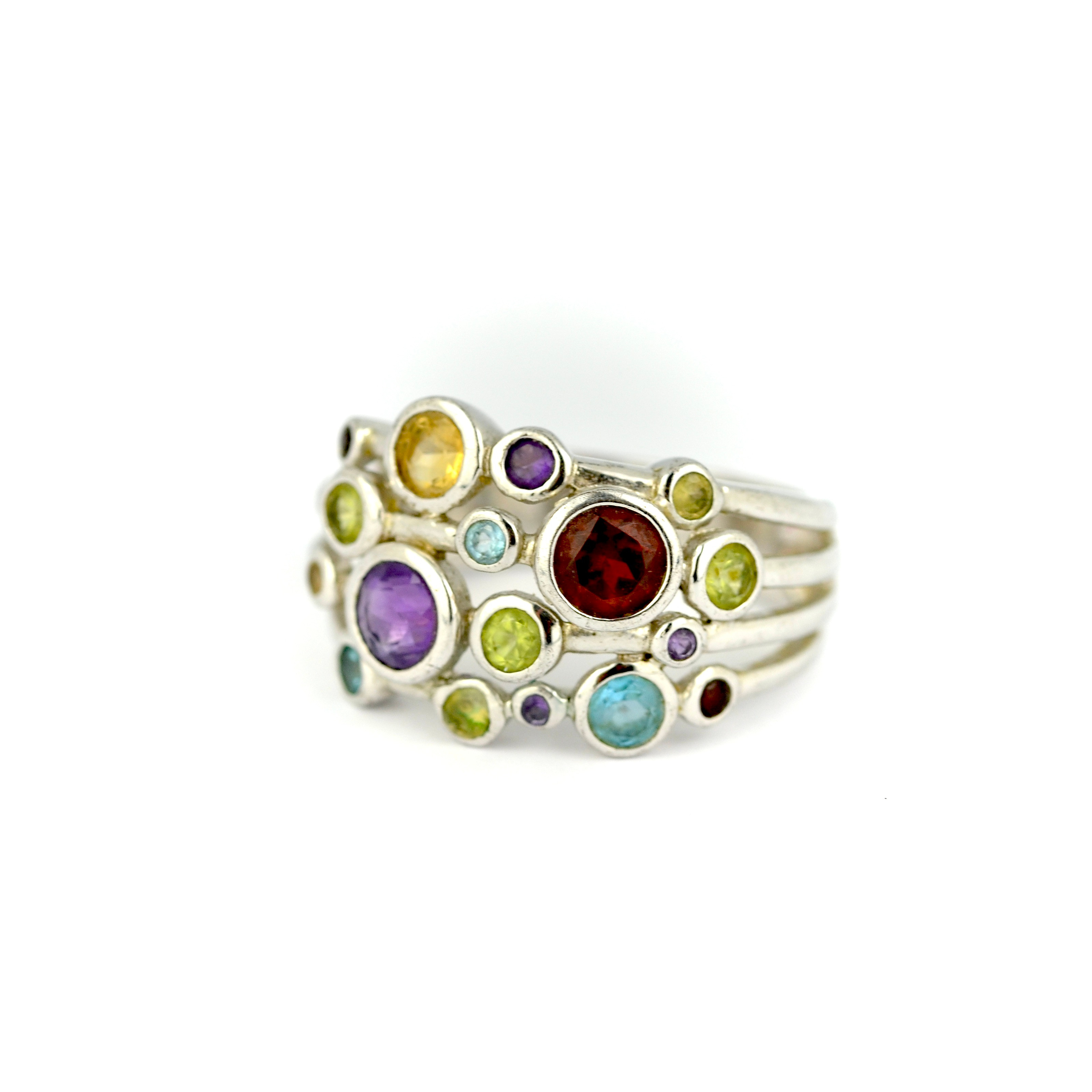 3005559. RING MIT MEHREREN EDELSTEINEN UND SILBER.