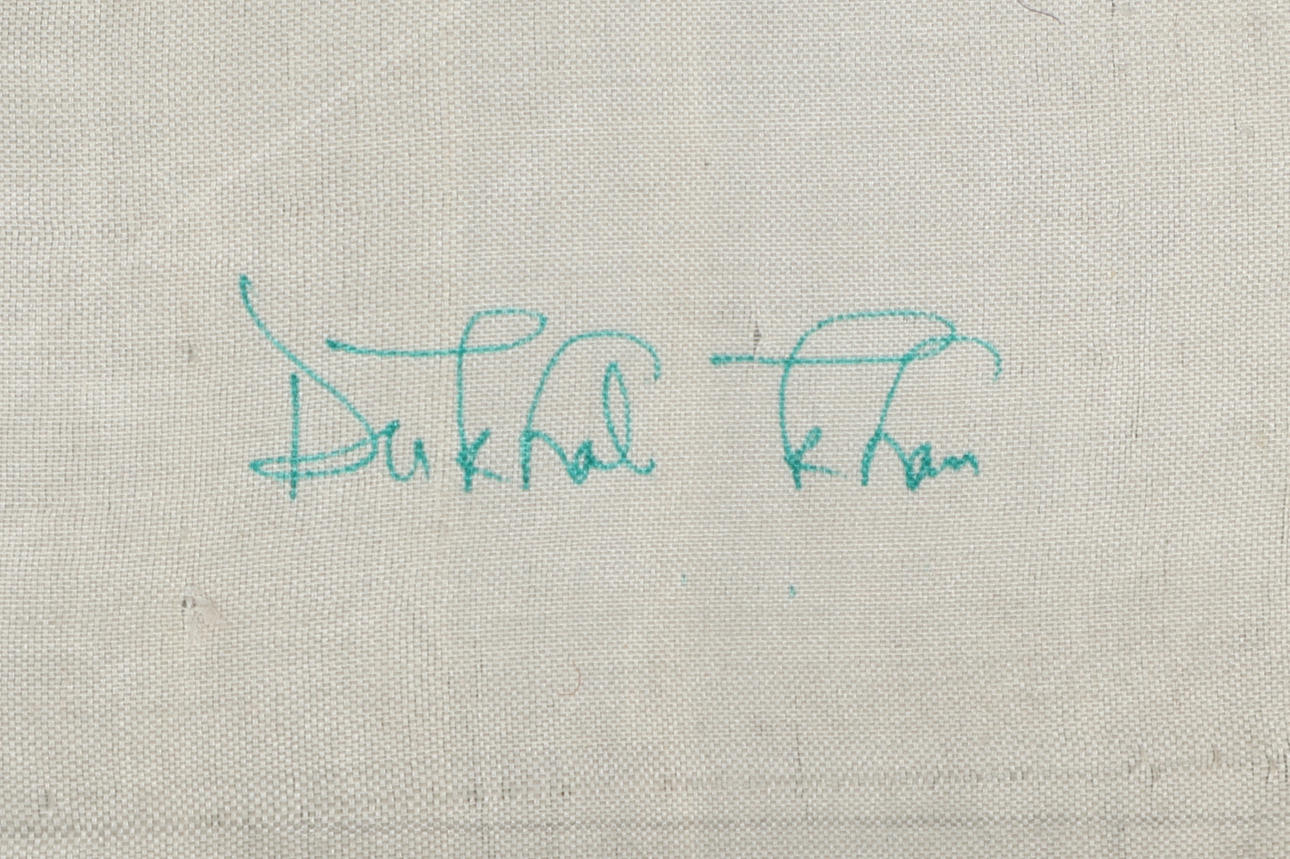 OIDENTIFIERAD KONSTNÄR. Öl auf Seide, Vögel & Bäume, orientalisch.