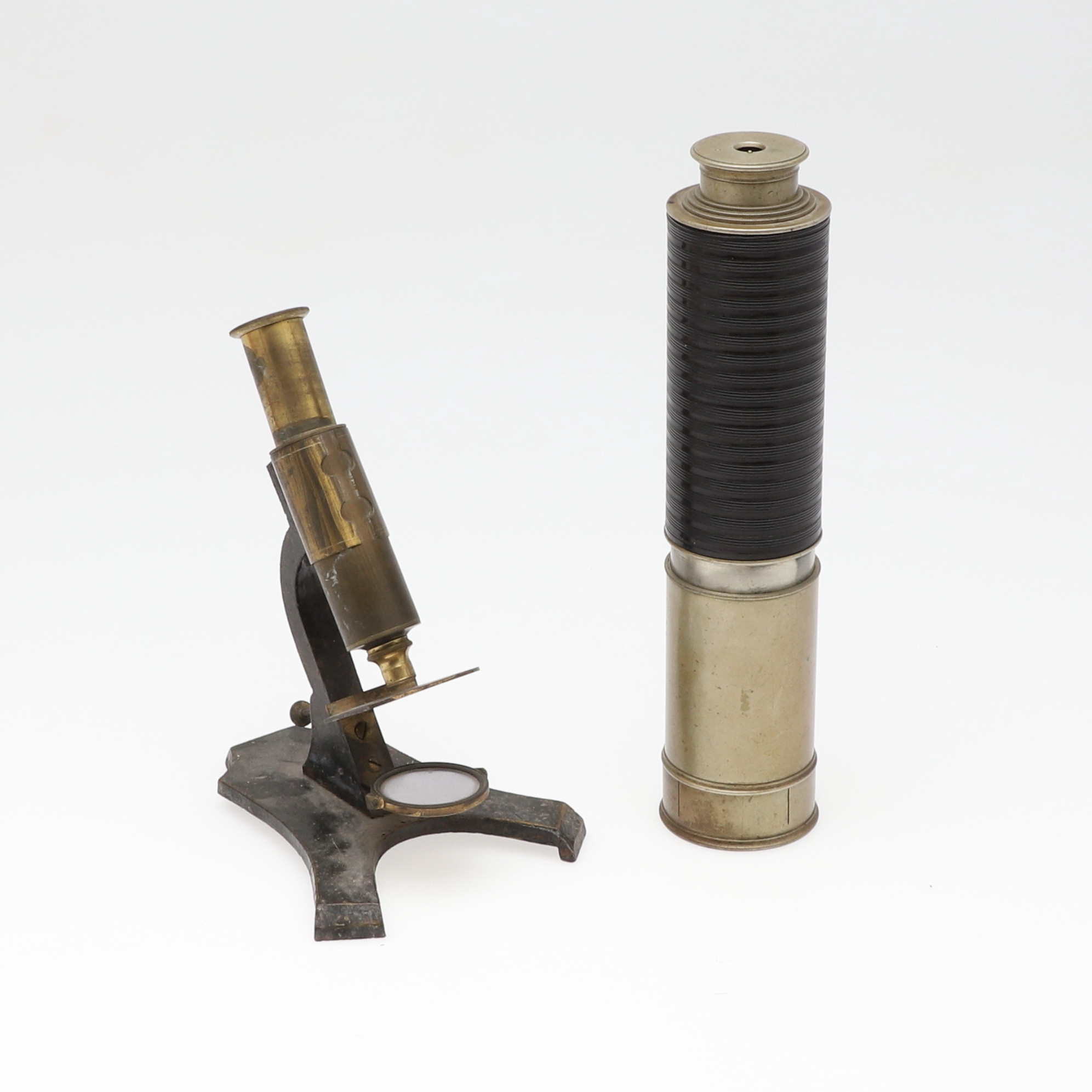 3006821. EIN TELESKOP UND EIN SCHULMIKROSKOP AUS MESSING.