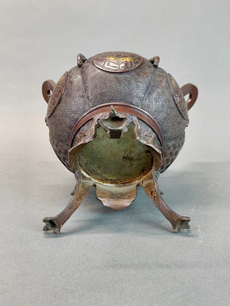 Ein japanisches Bronze-Räuchergefäß aus dem 19. Jahrhundert, H. 32 cm. B. 29cm.