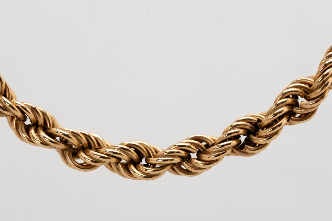 Schmuckset bestehend aus Kette, Ohrringe und Armband gefertigt aus 585er Gold, Maße ca. Kettenlänge 47 cm, Armband 19 cm, Ohhringe 3,5 cm. Gesamtgewicht ca. 26,7 Gramm.