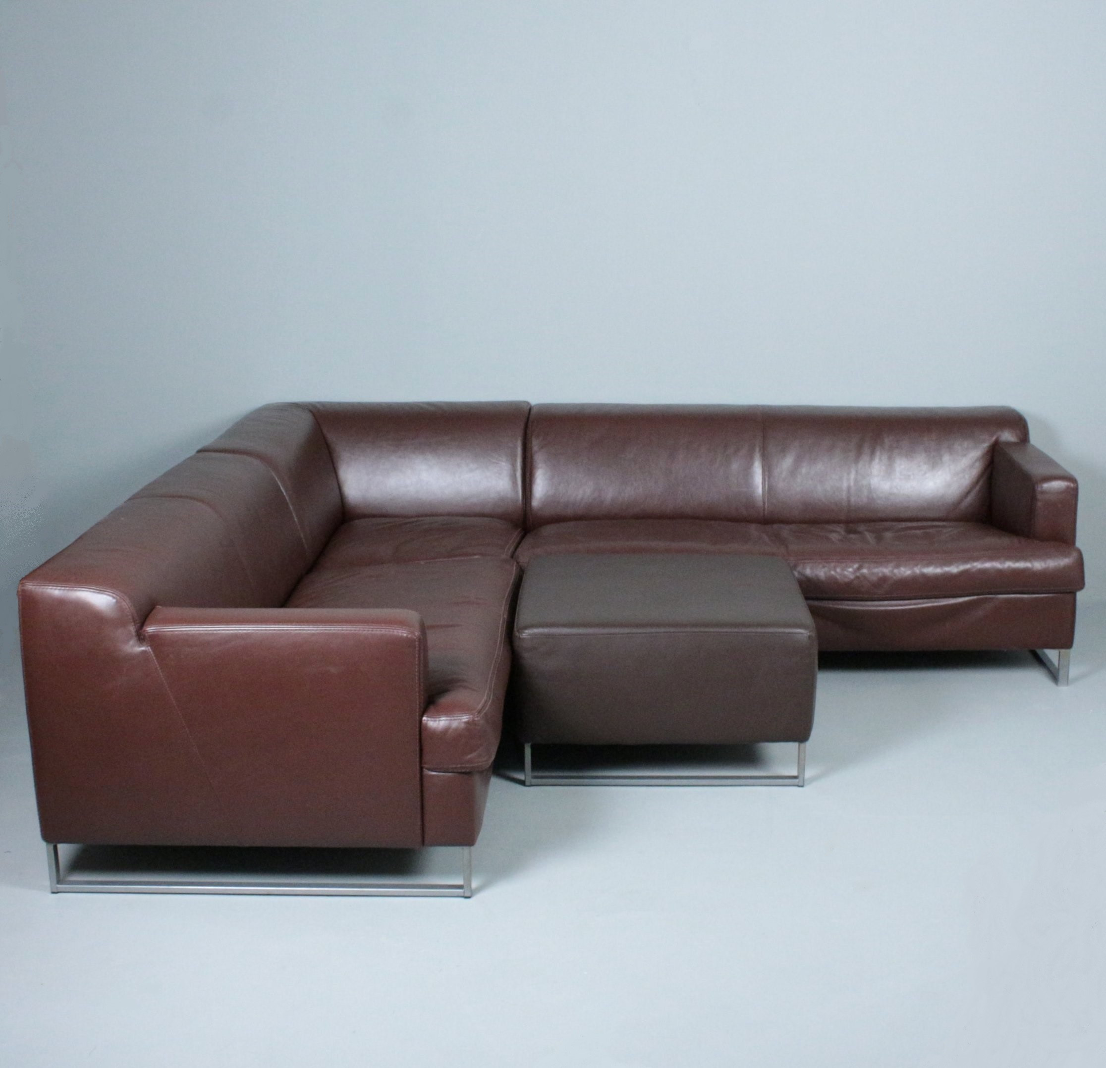 3009043. Modulsofa / Couch mit Ottomane, Leder.