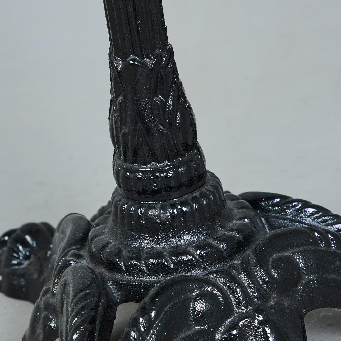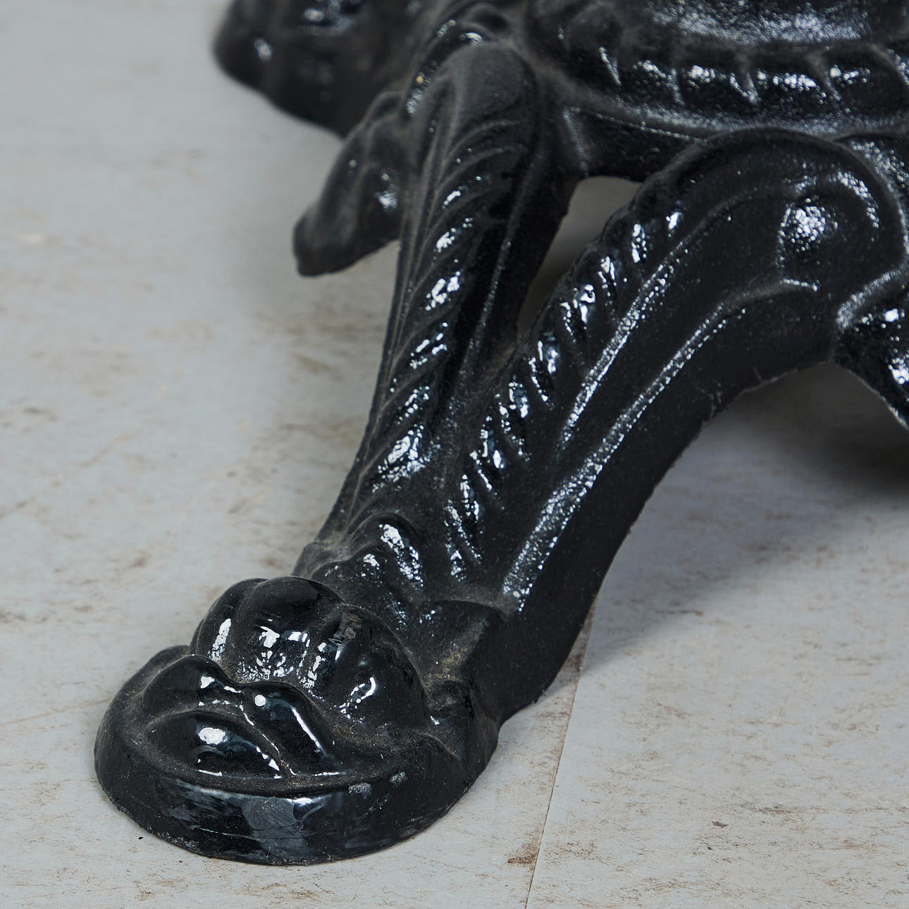 Altersgemäße Gebrauchs- und Reibespuren, partiell stärkere Kratzer im Marmor sowie geringfügige Lackabplatzungen im Gusseisen.