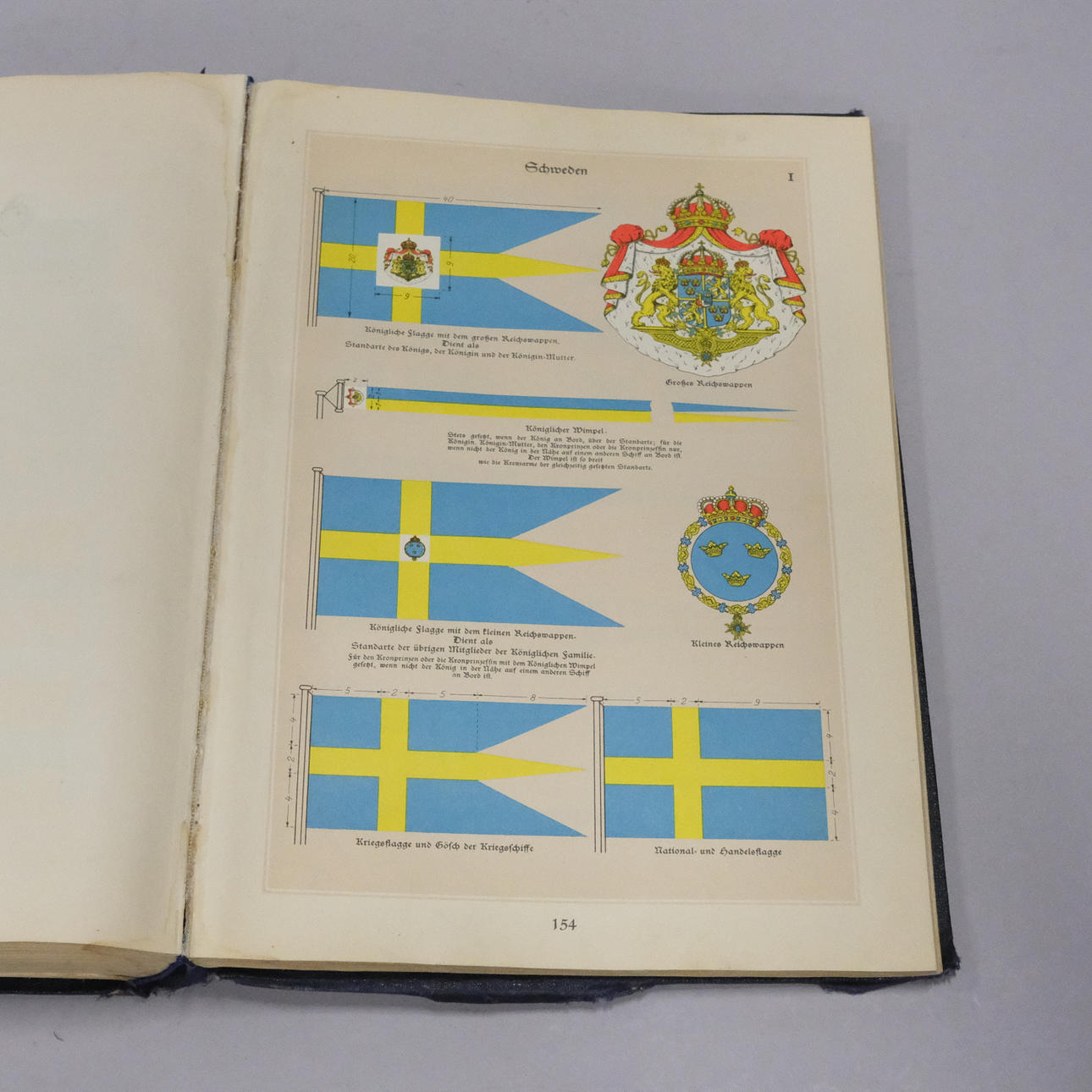 Druck und Verlag der Reichsdruckerei. Flaggenbuch Flg. B Teil 1. NEIN. 377. Blau gebundenes Blatt mit goldenen Details. Bedruckte Flaggen.