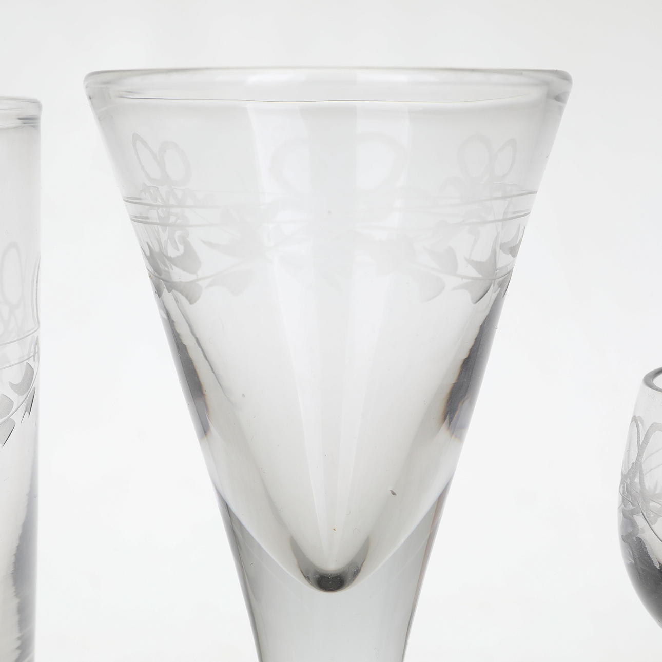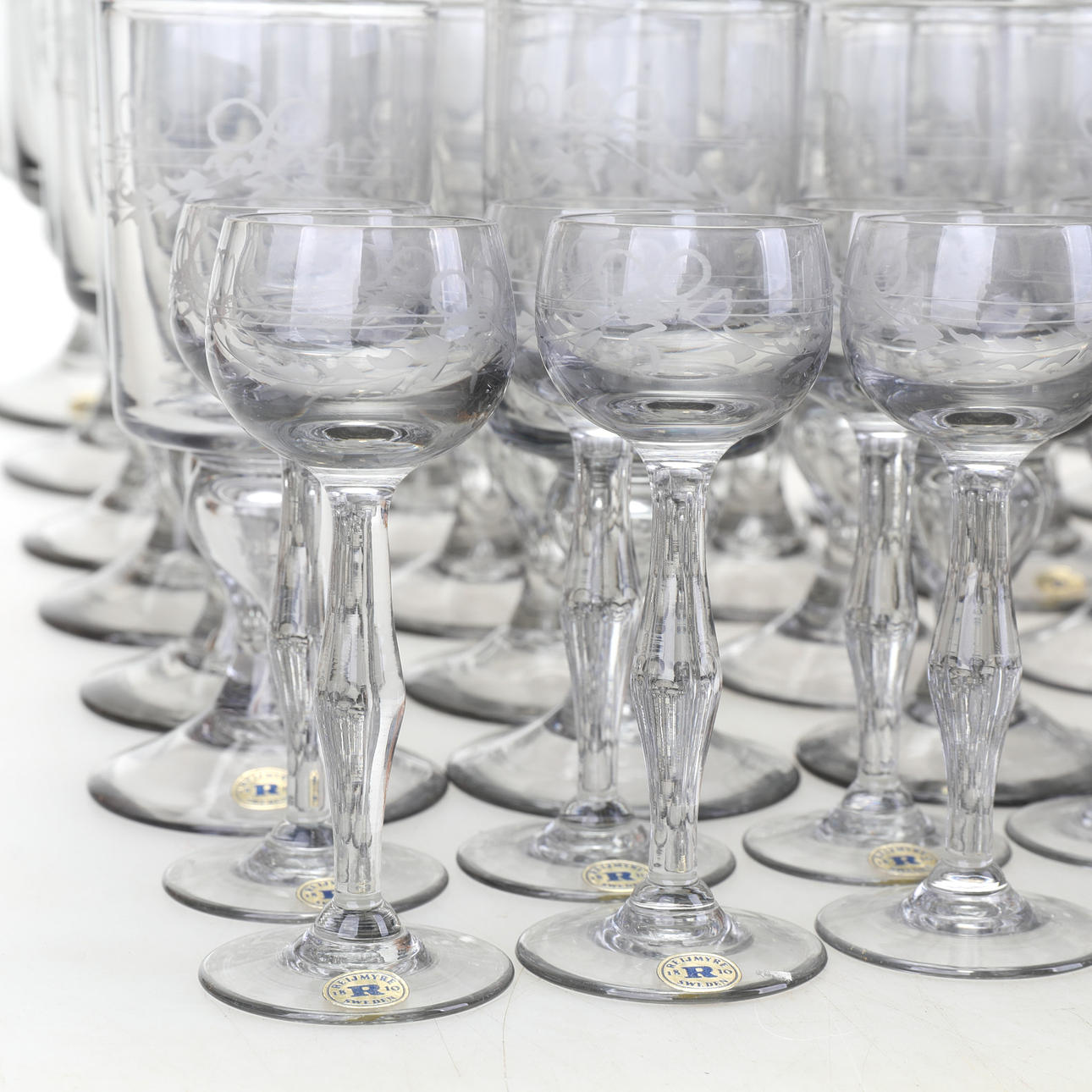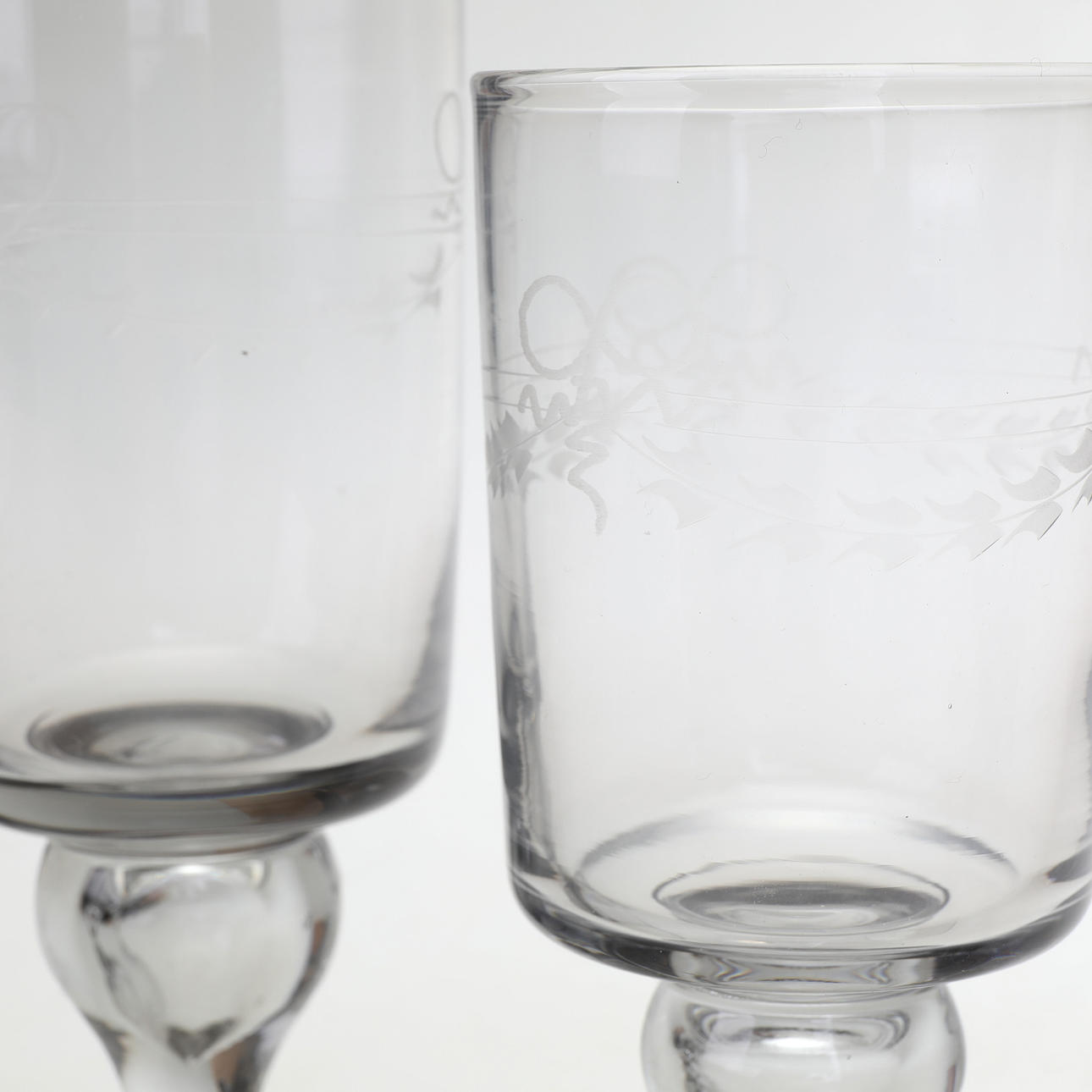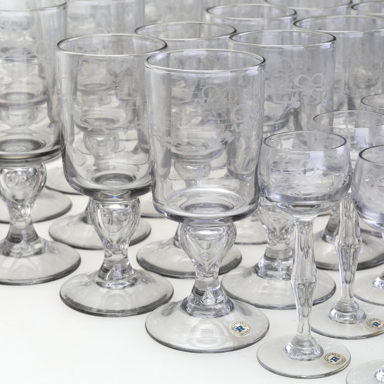 Rauchgetönt 12 Gläser, ca. ø 7 cm, 18 cm hoch 12 Gläser, ca. ø 6,5 cm, 16,5 cm hoch 12 Gläser, ca. ø 6 cm, 15 cm hoch 12 Gläser, ca. ø 5,5 cm, 15 cm hoch 12 Gläser, ca. ø 5,5 cm, 6 cm hoch 12 Gläser, ca. ø 4 cm, 11,5 cm hoch 1 Kanne 1 Karaffe Klarglas 1 Schüssel auf Fuß ca. ø 9 cm, 14 cm hoch.