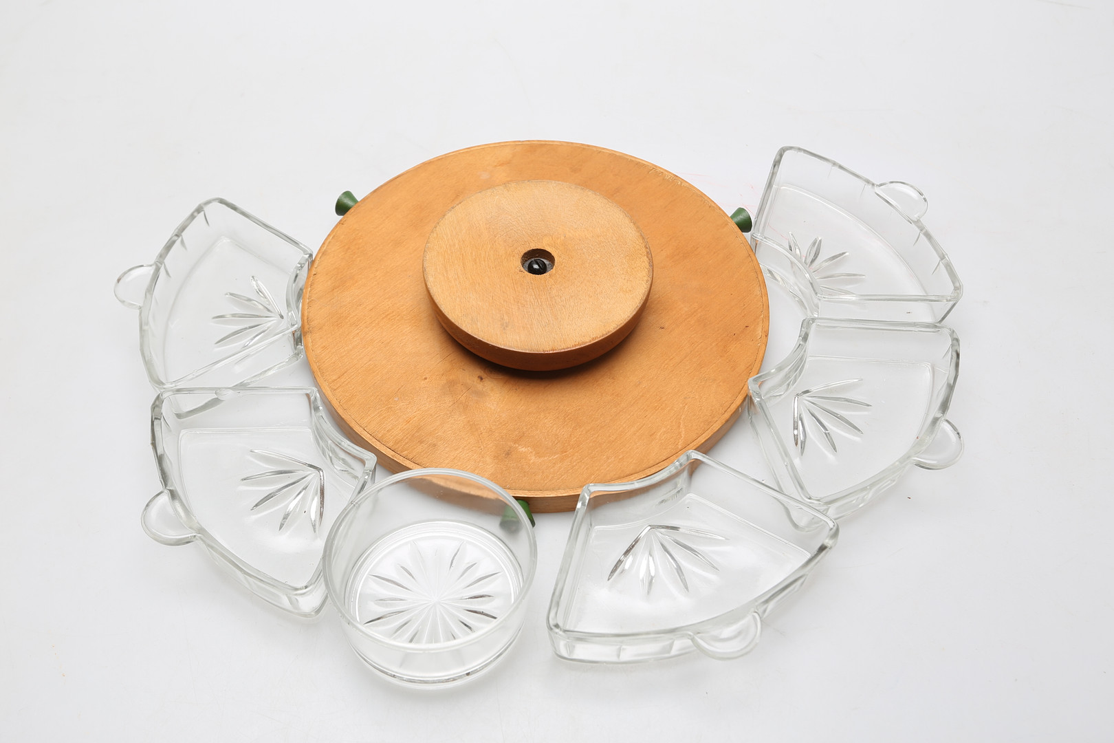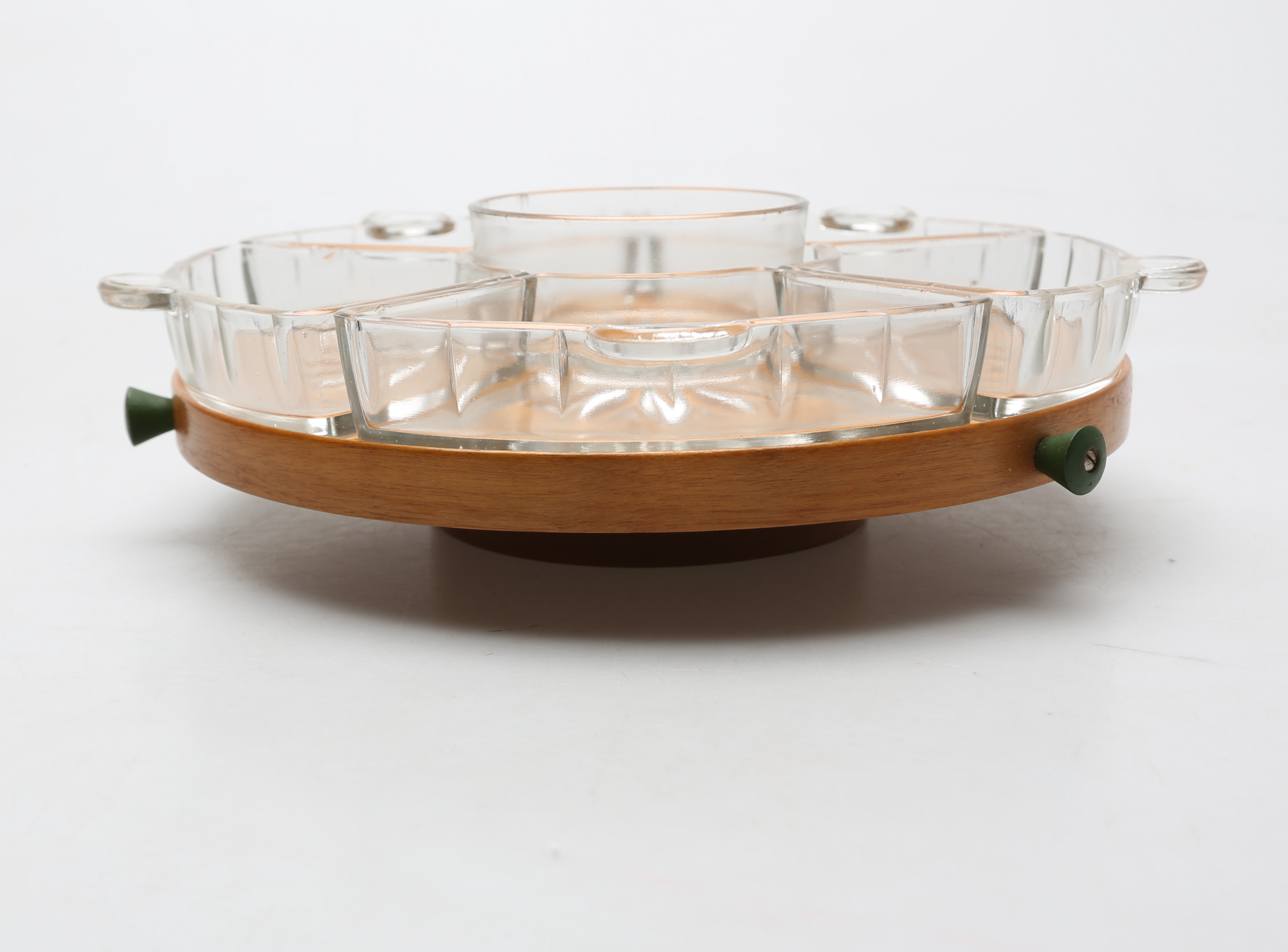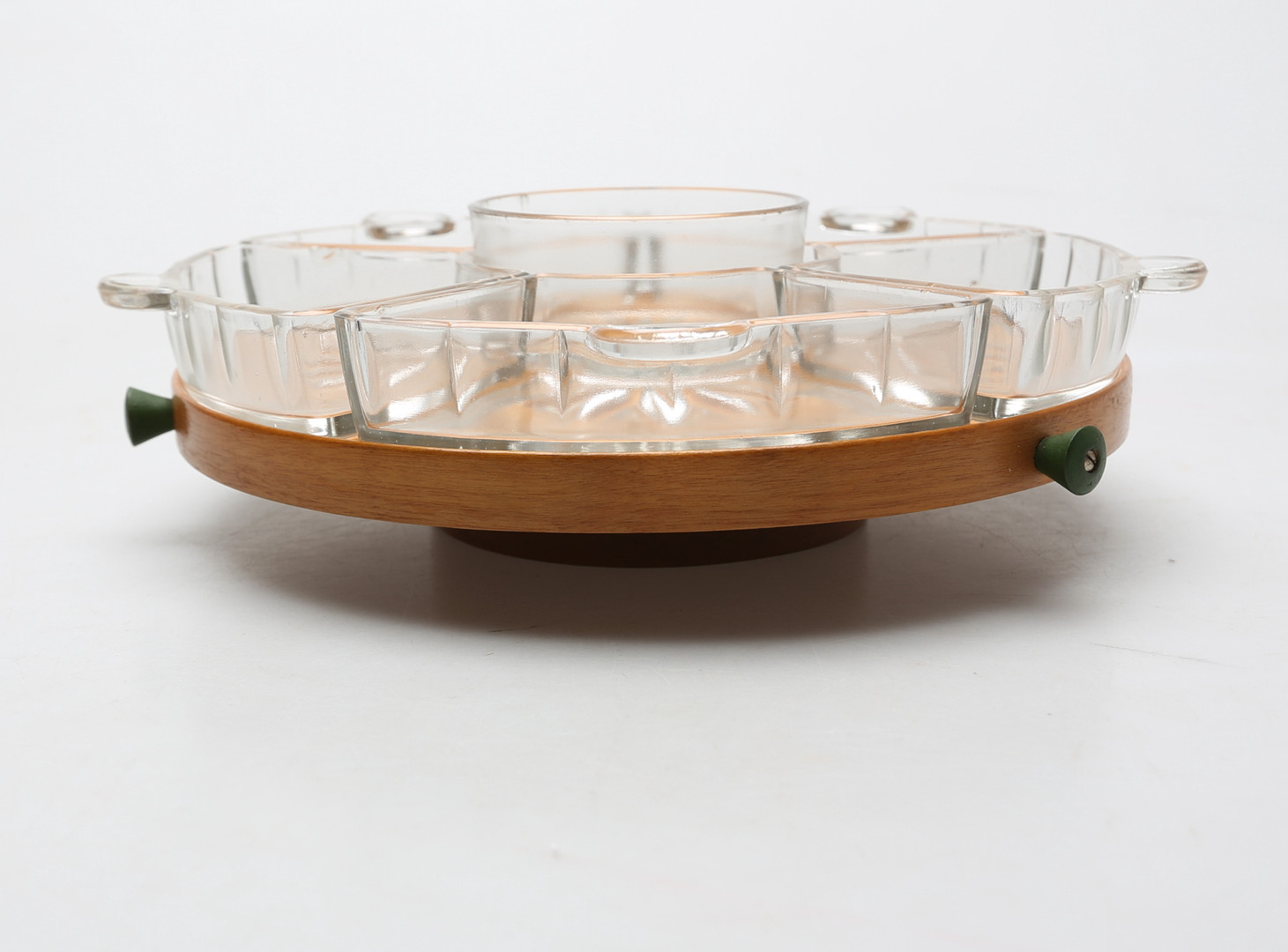 3013236. SERVIERKARUSSELL, Glas/Holz, 1900er Jahre.