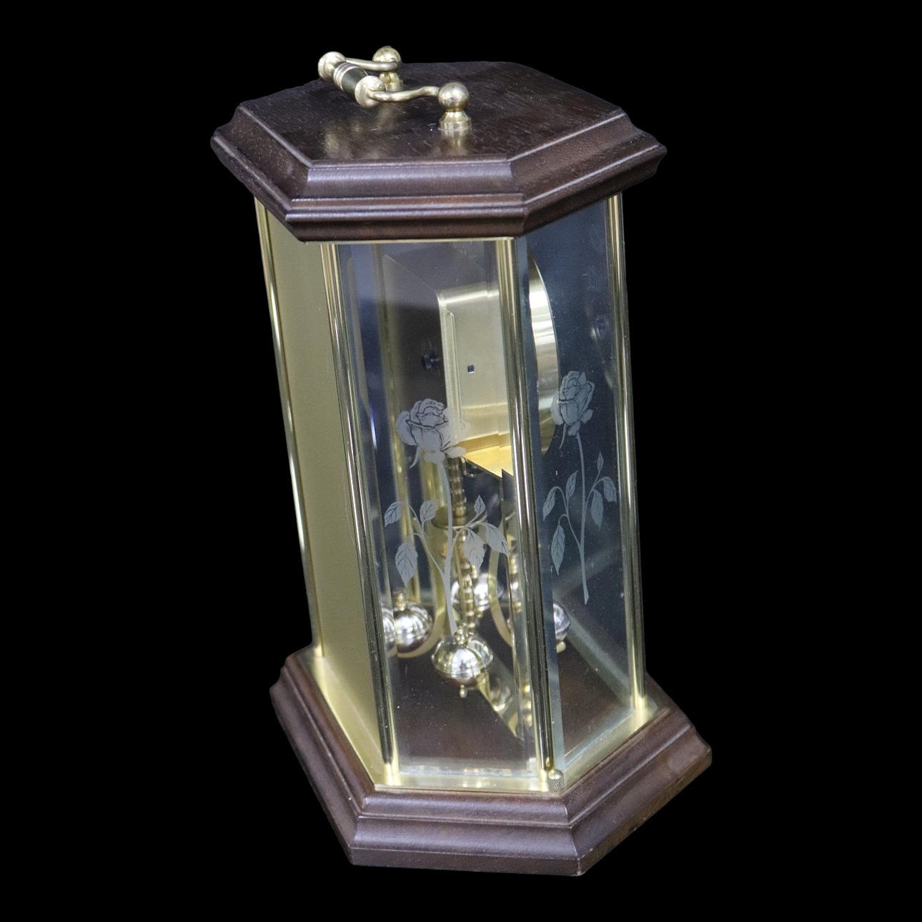 3018977. TISCHUHR, Holz und Glas, Haller.