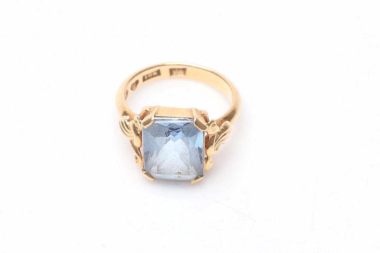 3019716. RING, 18 Karat Gold mit blauem Stein, 6,2 Gramm.