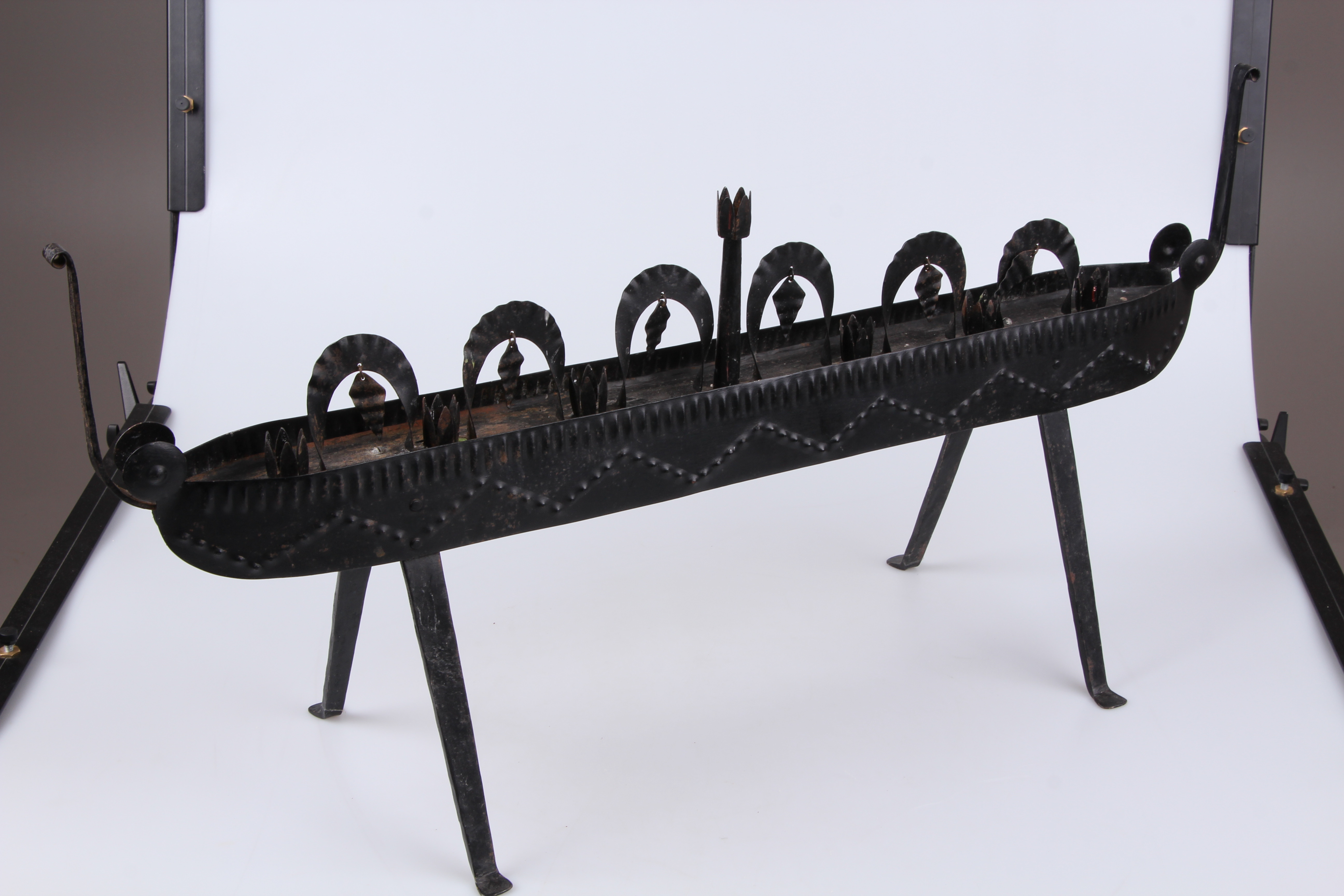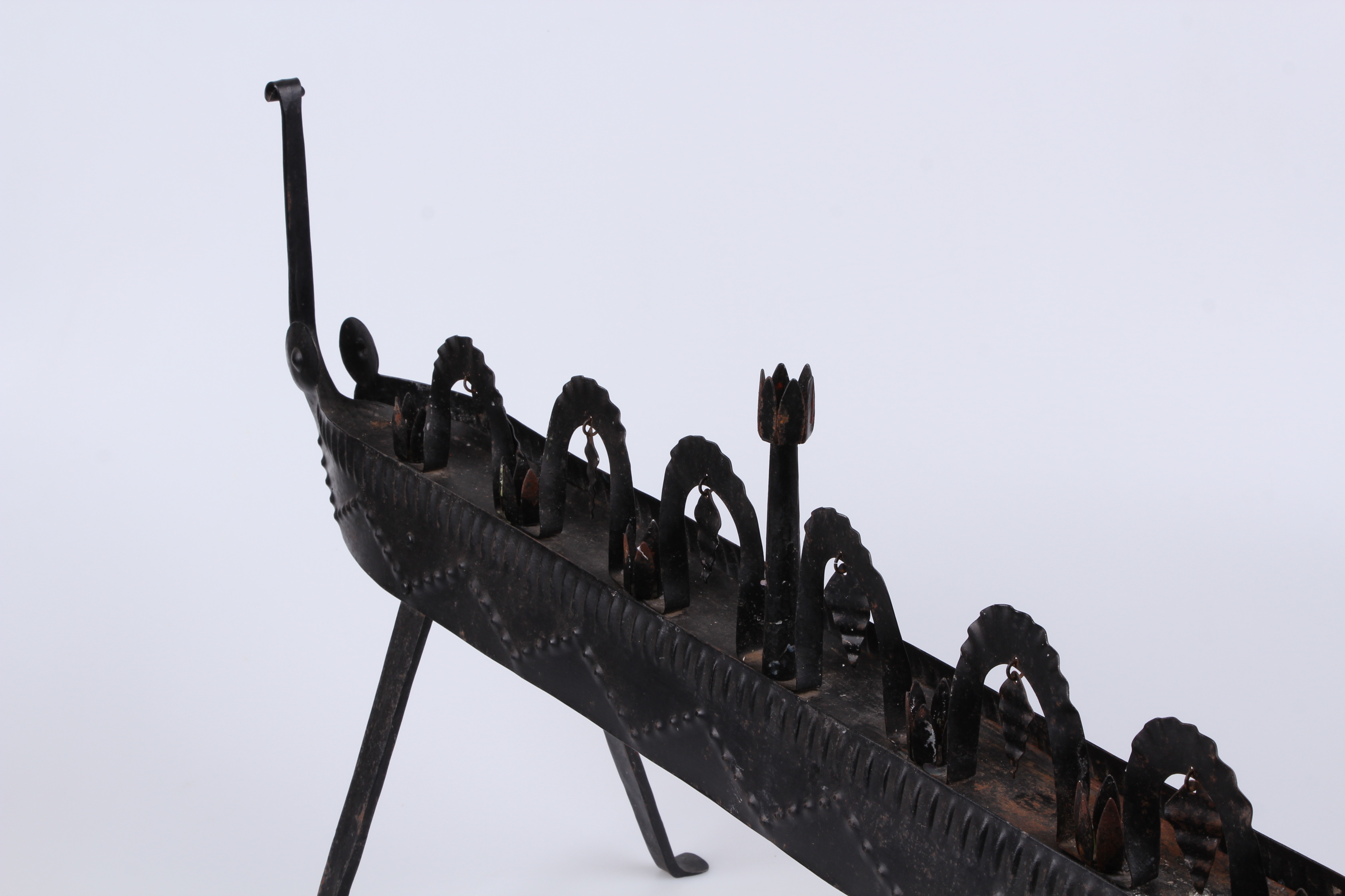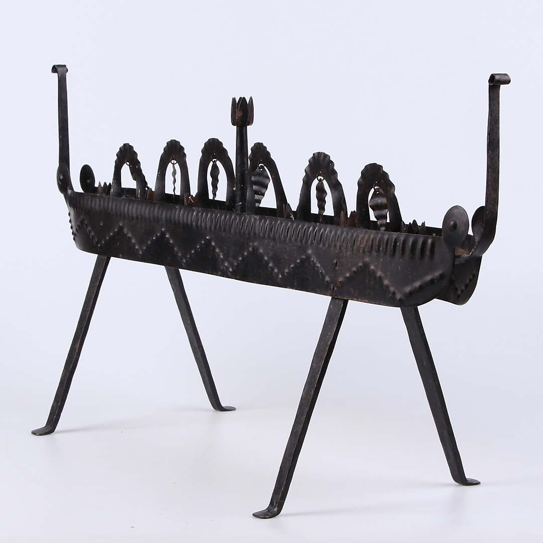 302217. KERZENHALTER, geschmiedet, in Form eines Bootes, 20. Jahrhundert.