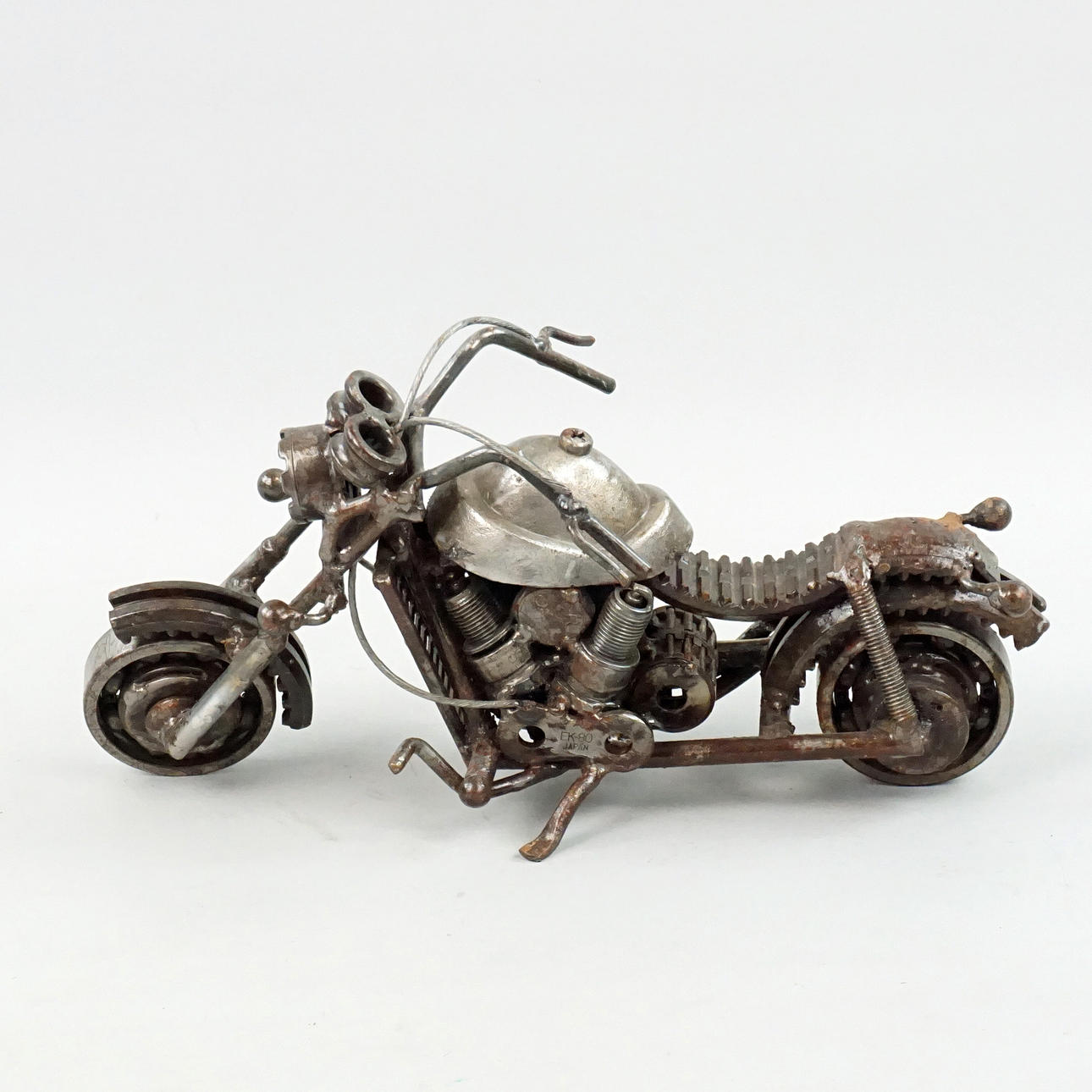 Motorrad, geschweißte Metall- und Schrottteile, Länge ca. 29 cm.