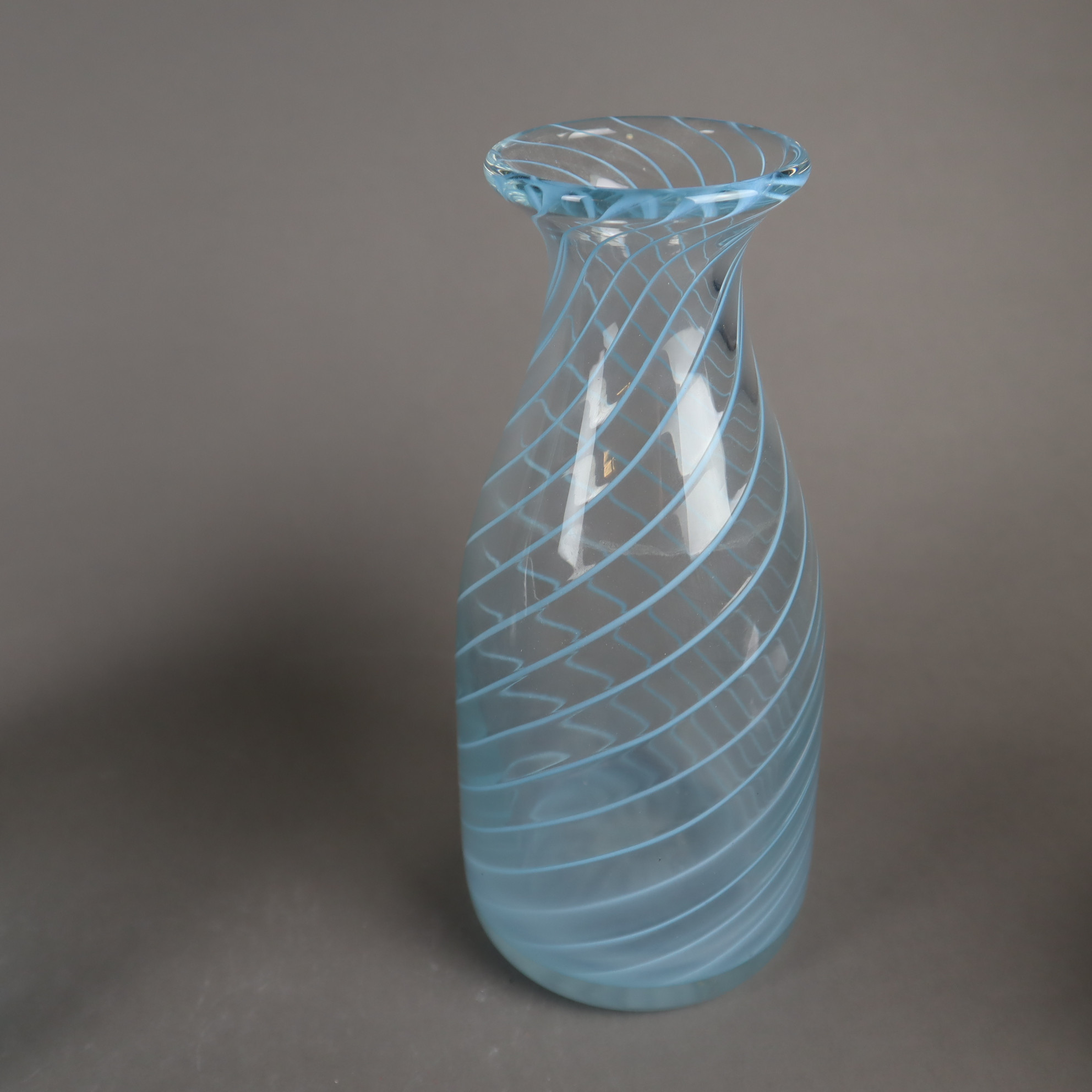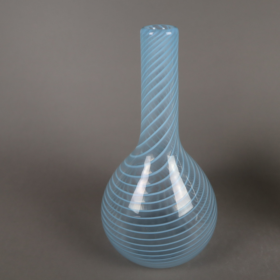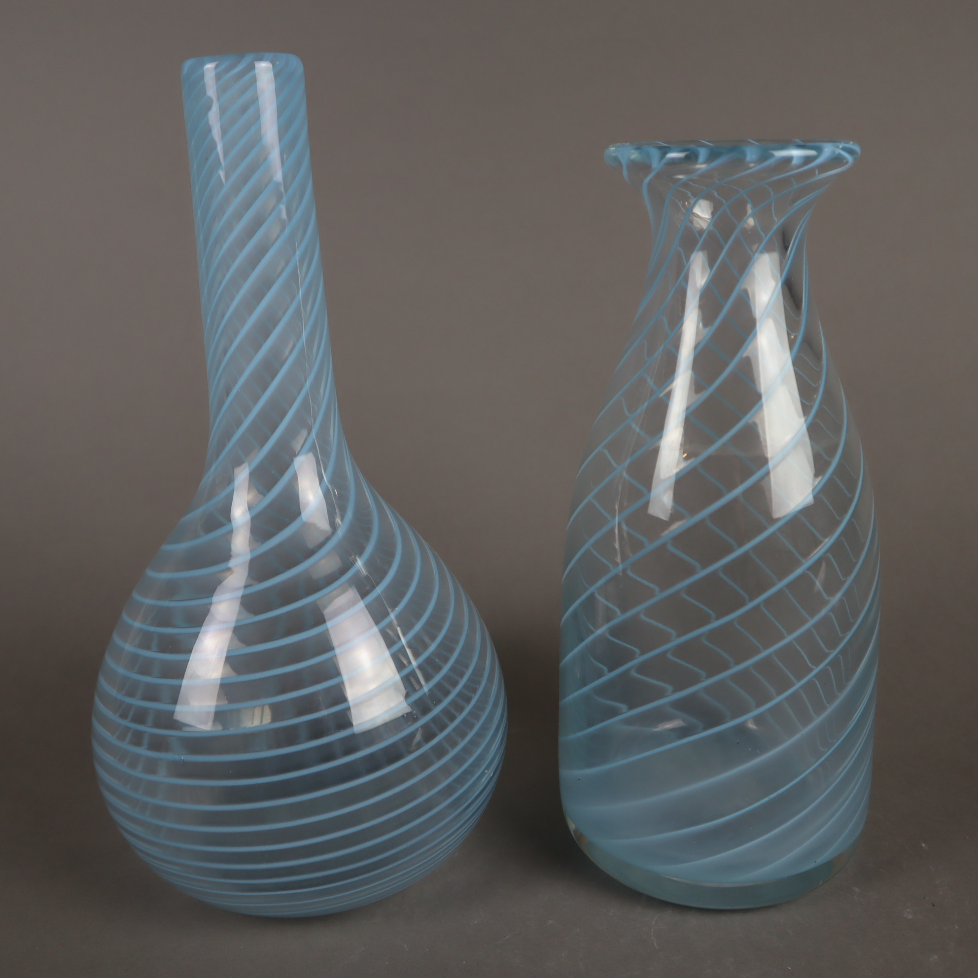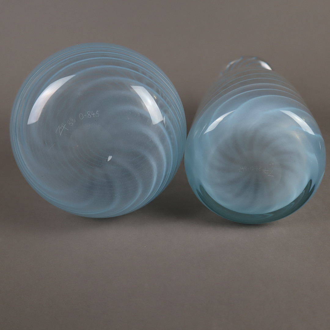 3024046. 2 VASEN - Klarglas mit eingelegtem, hellblauem Fadendekor.