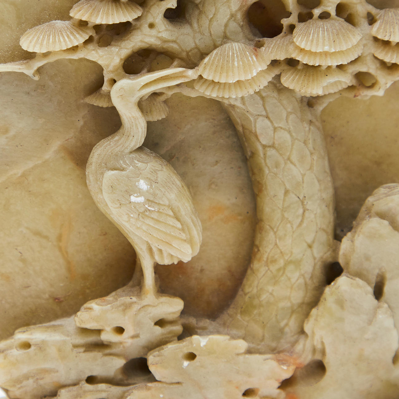 3028341. Skulptur / Figur, Kranich am Baum, Speckstein, China (2).