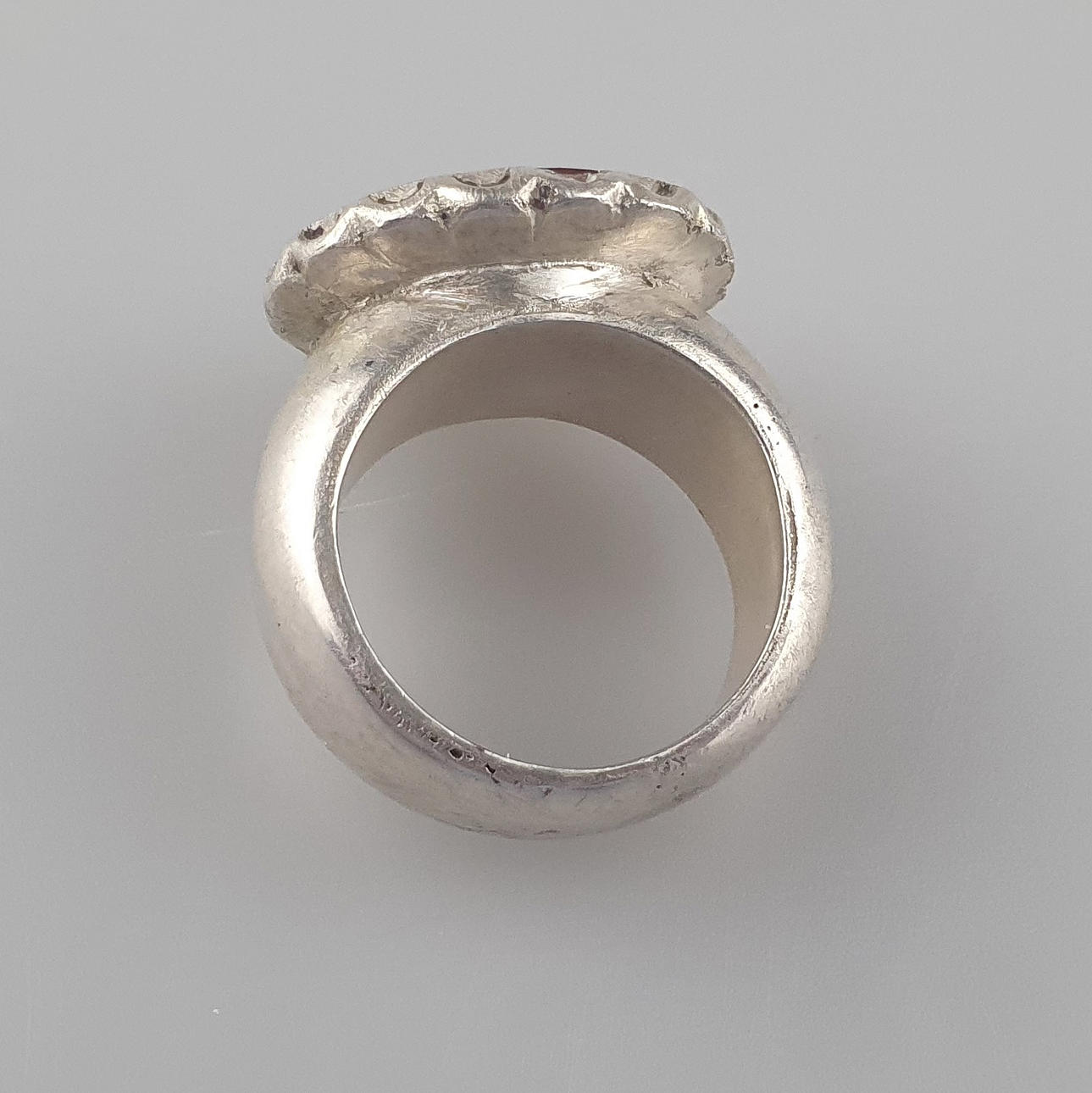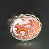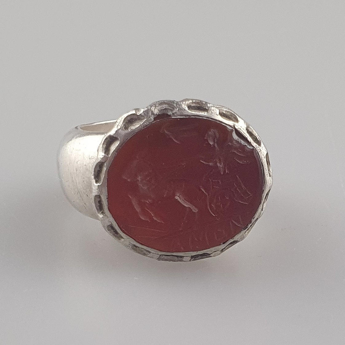 3028708. - SILBERRING mit INTAGLIO - massive Silberfassung, Karneolplakette.