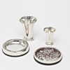 3031498. TELLER / UNTERSETZER, 2 Stück, und TASSEN, 2 Stück, Silber.