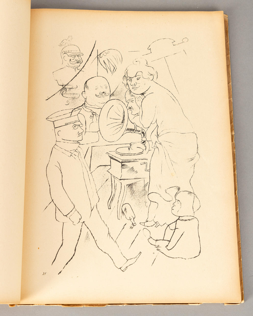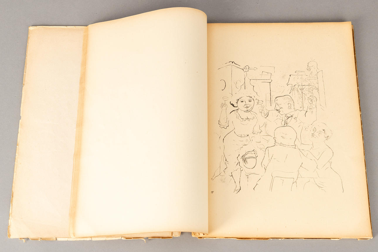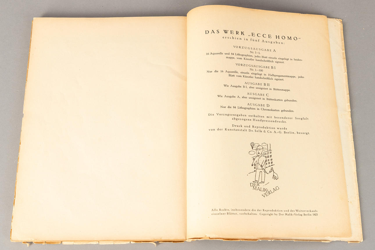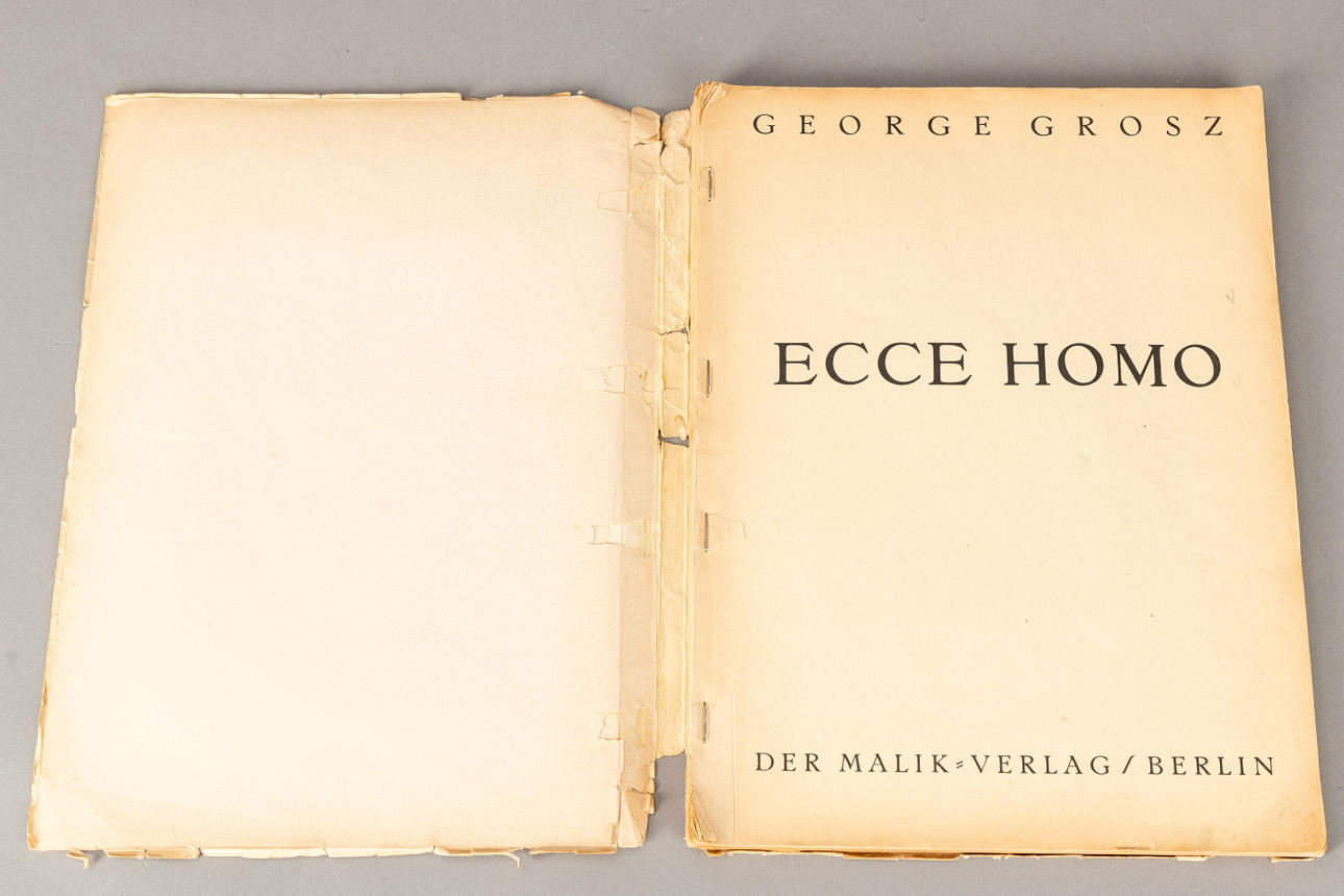 George Grosz (1893-1959), Ecce Homo, Buch mit 84 Offset-Lithographien nach Zeichnungen gebunden in Chromokarton, erschienen im Malik Verlag Berlin 1923, Exemplar der unsignierten Ausgabe D, ca. 35,7 x 26,5 cm (Buchformat). Vollständig.