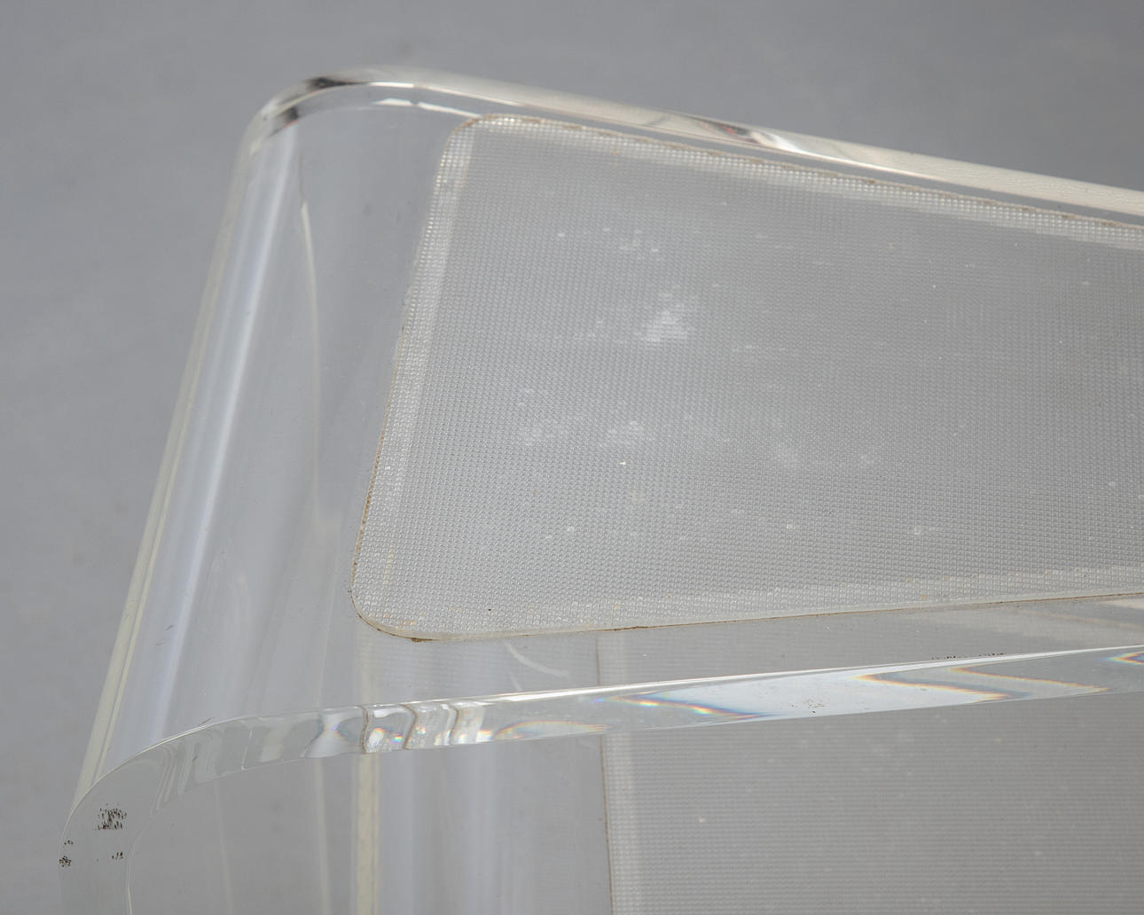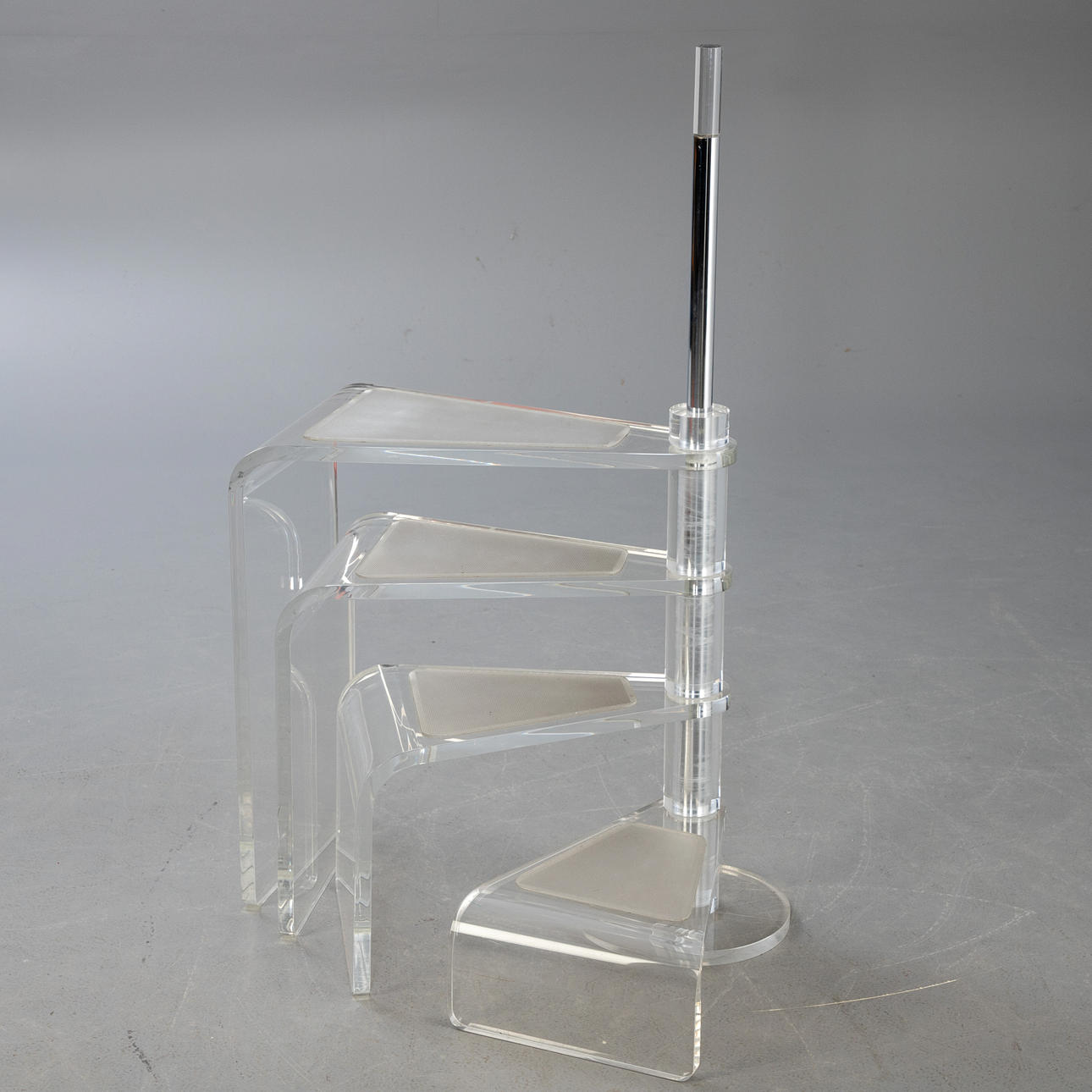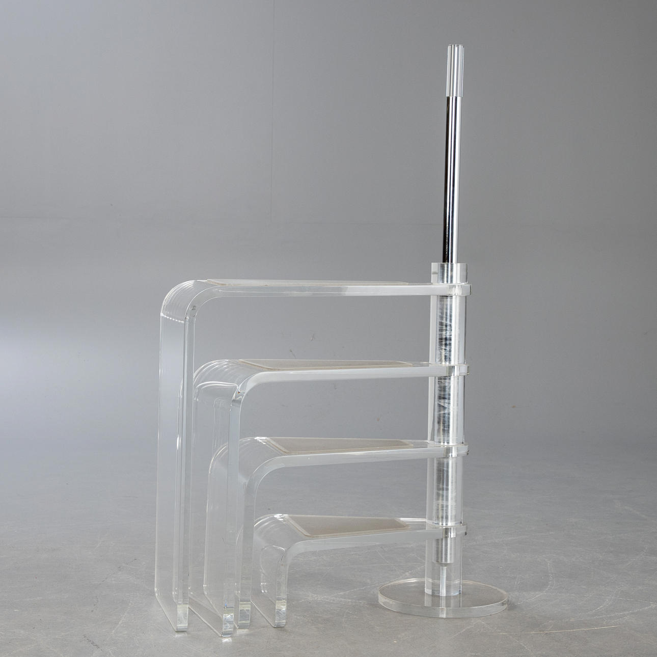 Kombination aus verchromtem Stahl und transparentem Acryl mit 4 rutschfesten Stufen.