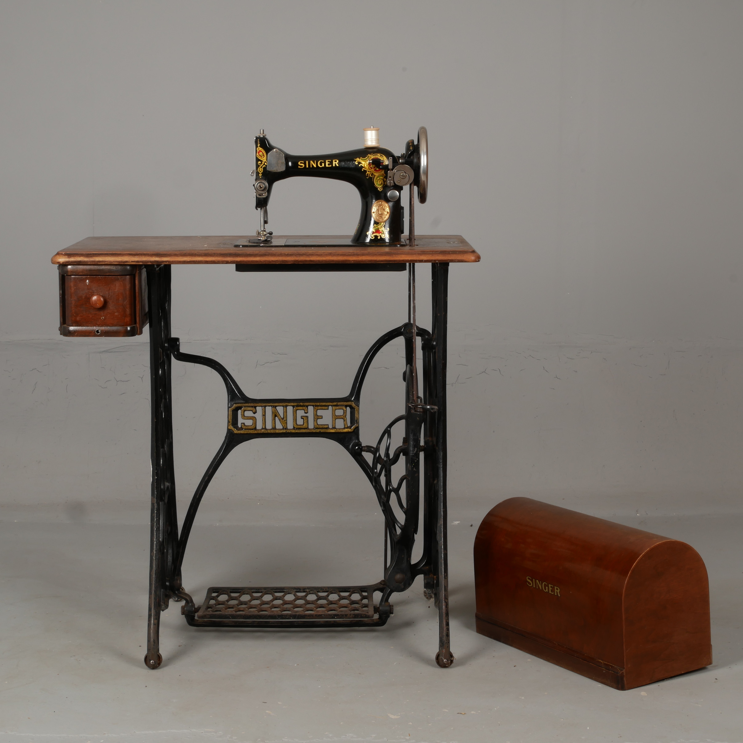 3041646. NÄHMASCHINE AUF EINEM BEIN-STAND. Sänger, 1925.