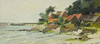 Küstenmotiv mit Gebäuden. Unterzeichnet. Bildmaße: ca. 29,5 x 66,5 cm. Rahmenmaße: ca. 31,5 x 68,5 cm.