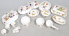 eine ovale Teller und Deckel, eine kleinere Teller und Deckel, Suppenterrine und Deckel, ein doppellippiger Topf, eine achteckige Teller und eine weitere kleinere, rechteckige Teller mit zwei Henkeln, eine flache runde Teller, sechs Soufflés Schüsseln, zwei größere Auflaufförmchen, Sauciere und Ständer sowie zwei Vorspeisenplatten (23).