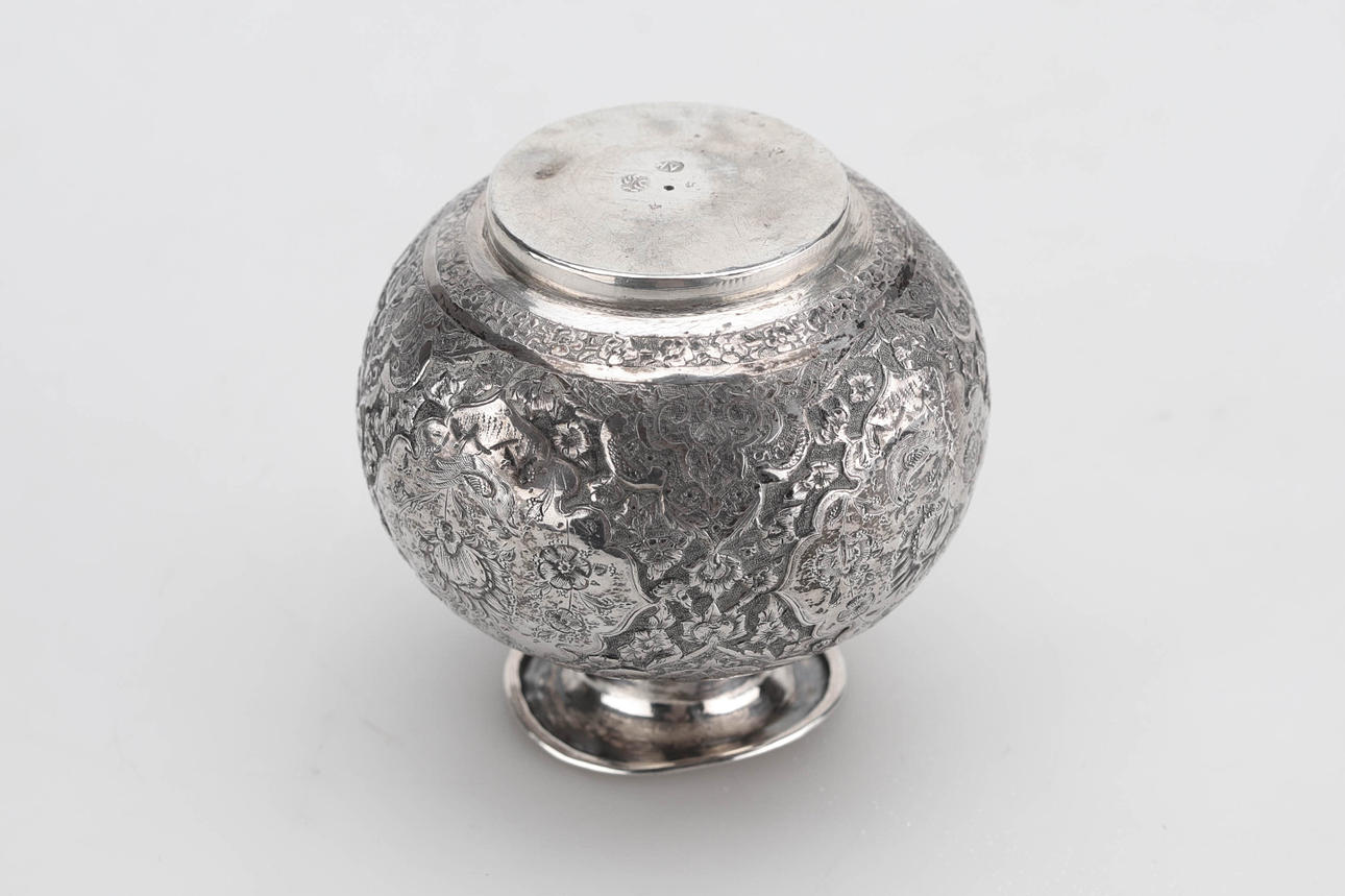 VASE, Silber, Kugelvase mit ziseliertem Dekor, Persien.