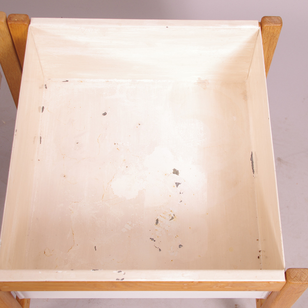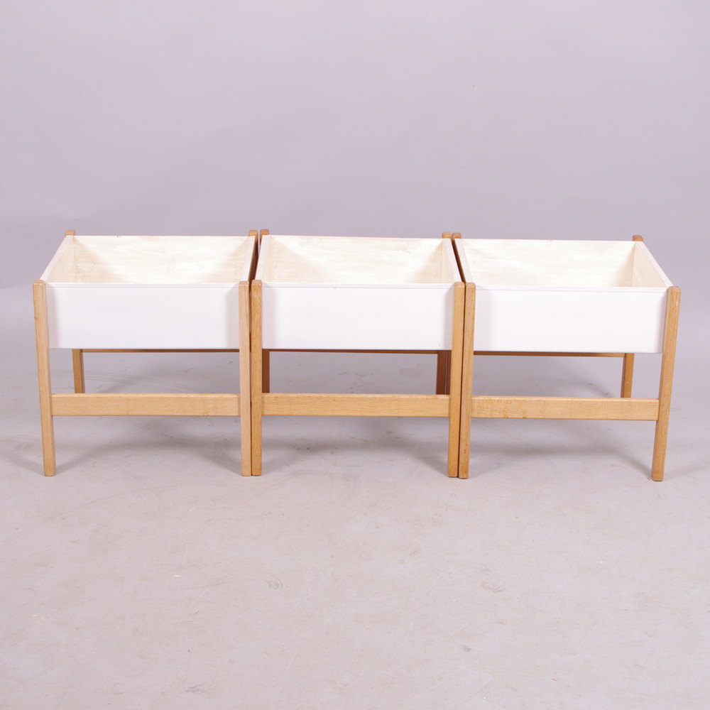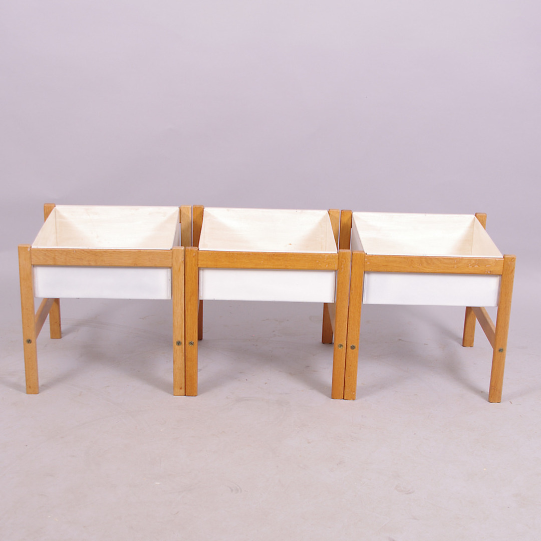 305300. FLOWER TABLE, 3-teilig, Eiche/Blech weiß lackiert.