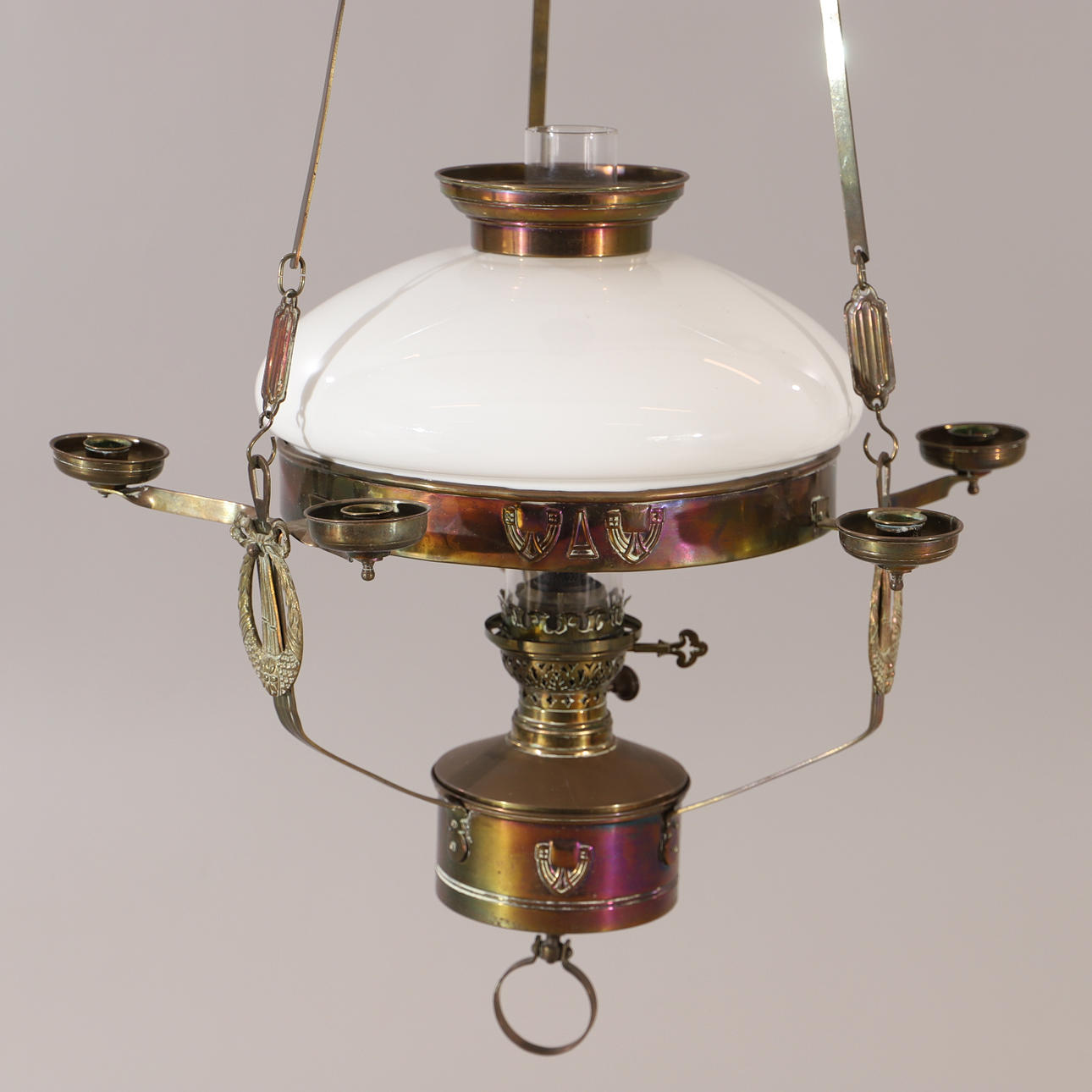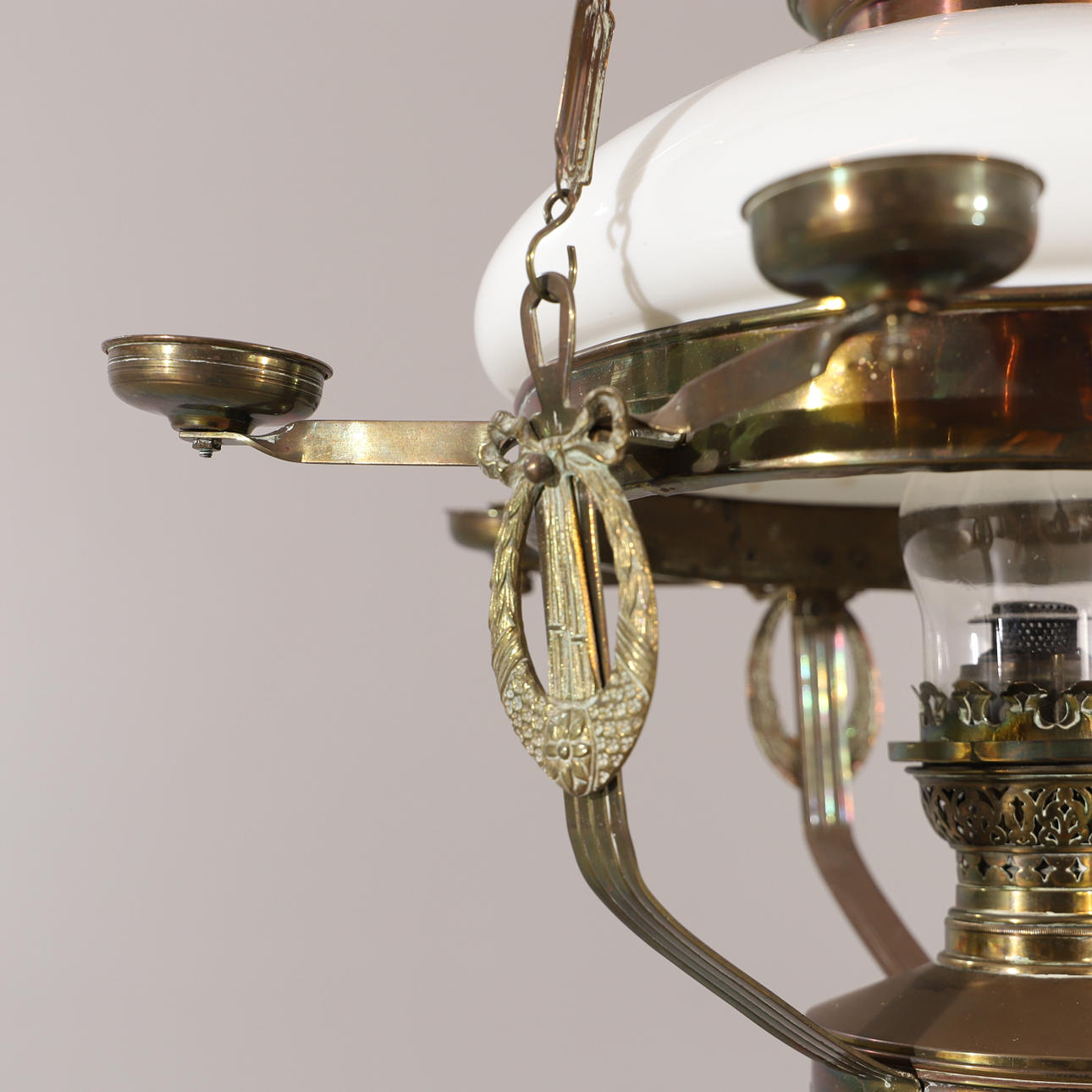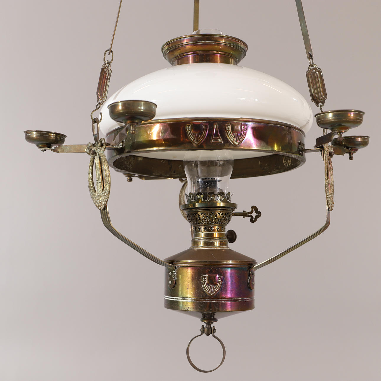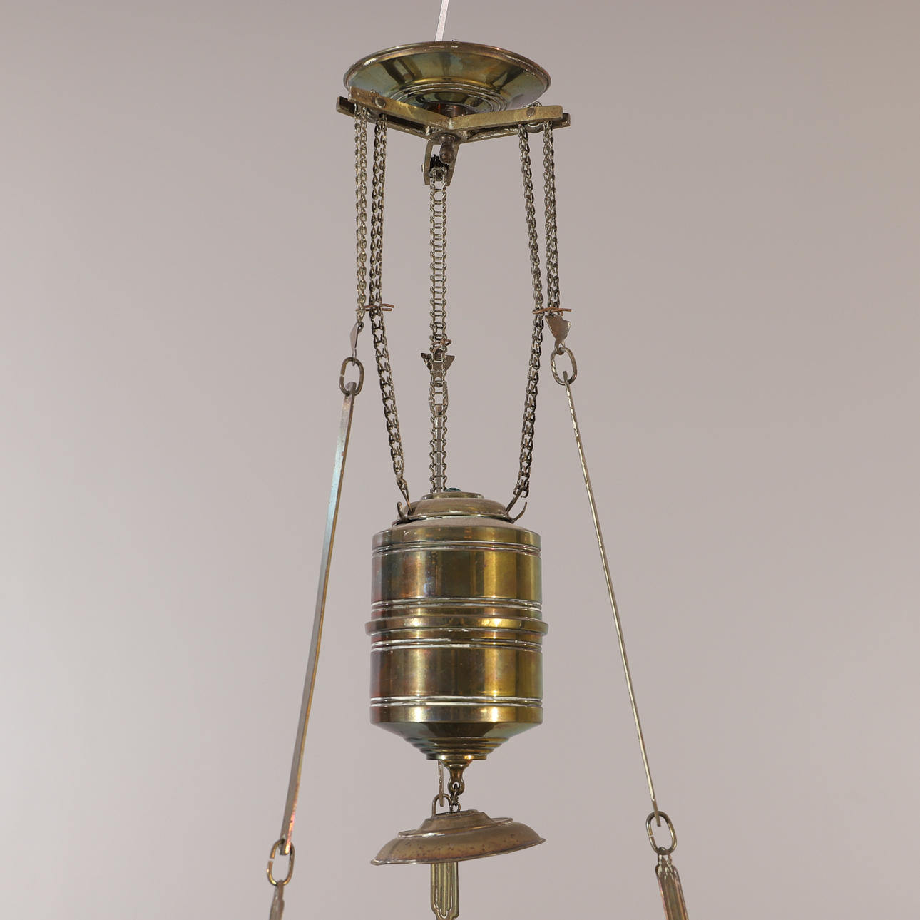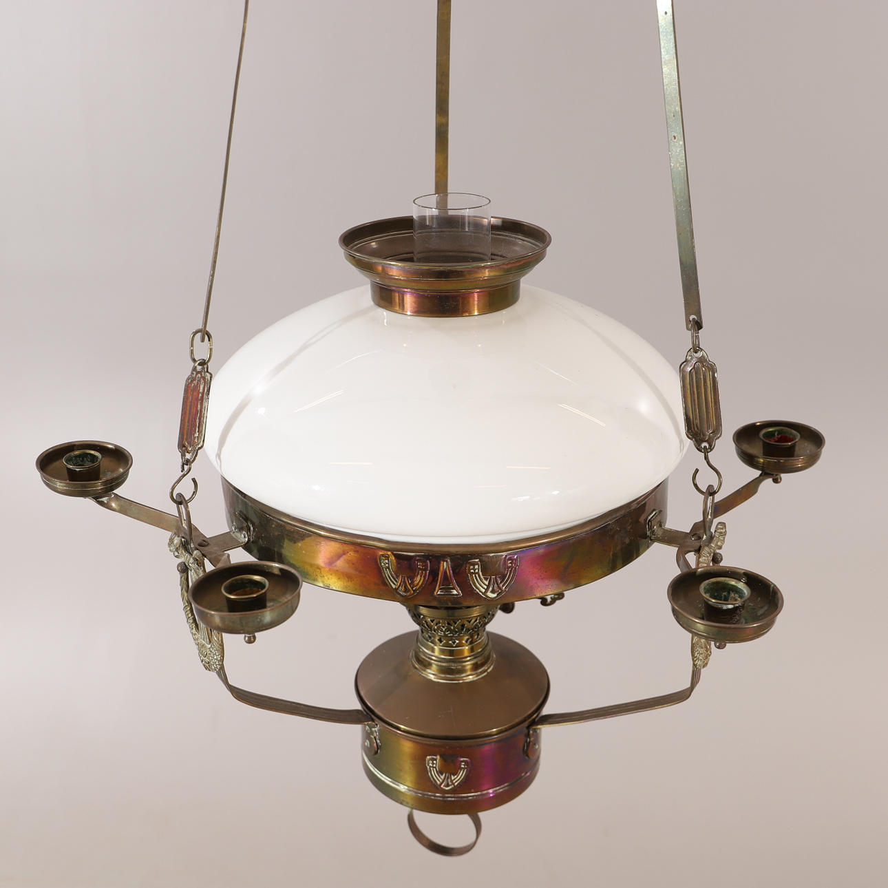 3056654. DECKEN-FOTOLAMPE, Messing mit Glaskuppel, Jugendstil.
