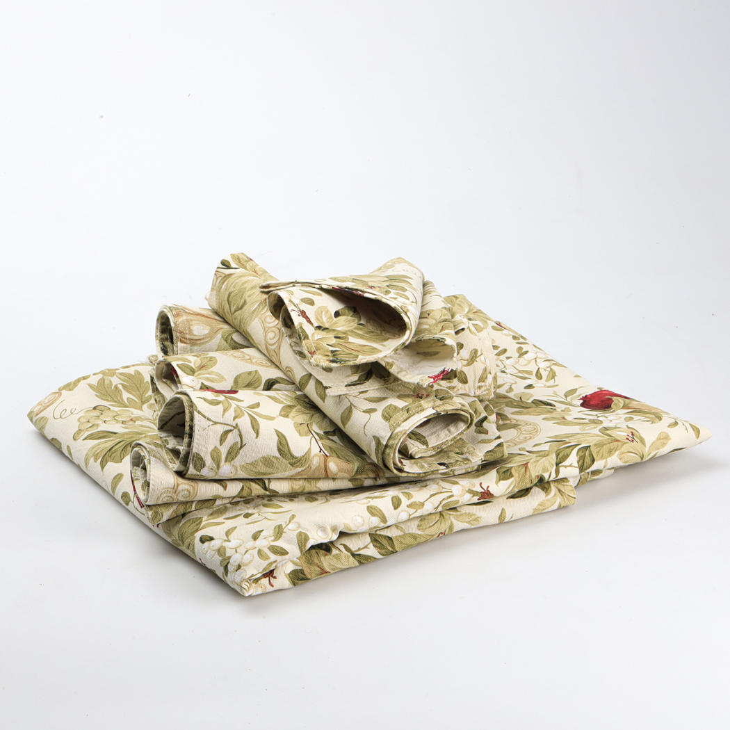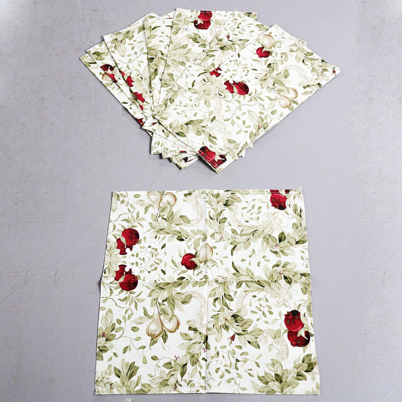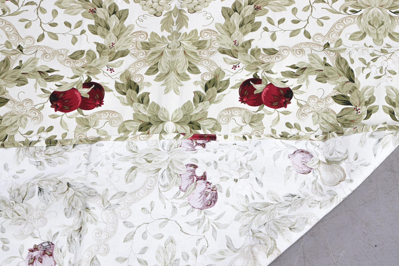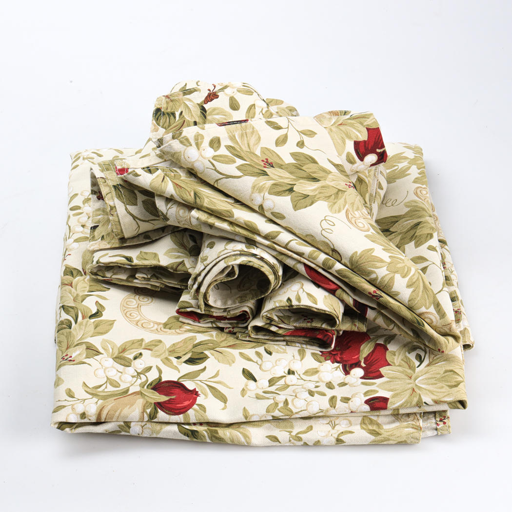 gedrucktes Muster auf Baumwolle, Leinwand 145x260 cm. Serviette ca. 50x50 cm.