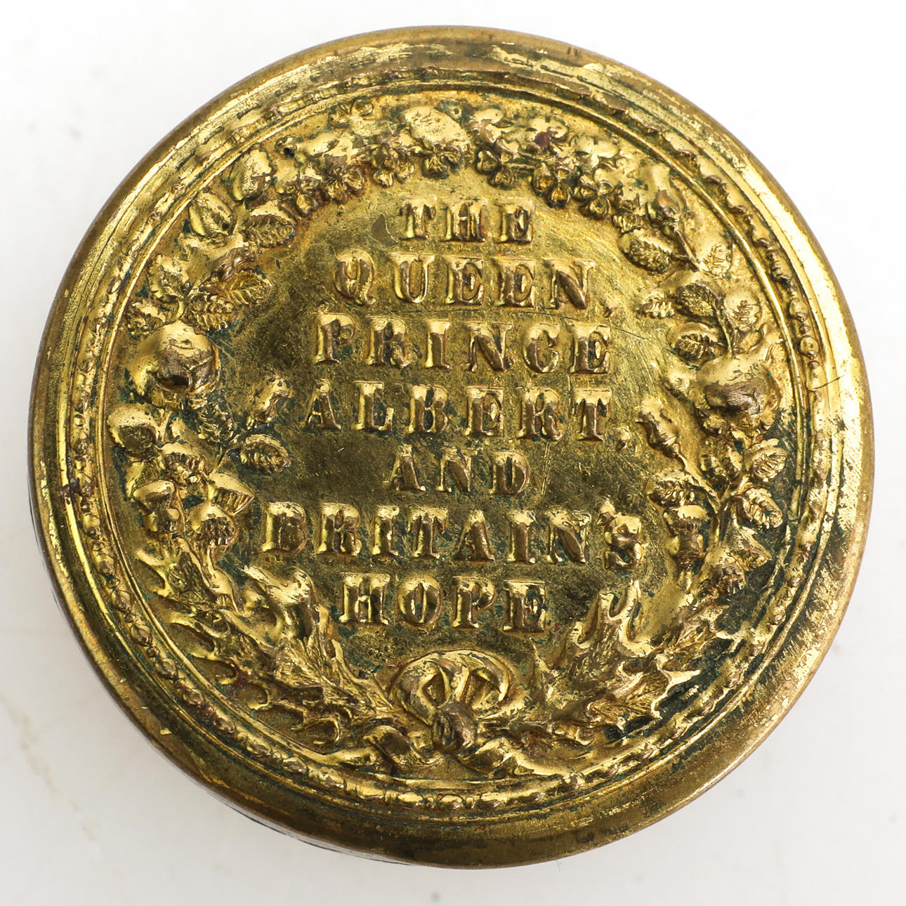 MÜNZDOSE, „THE QUEEN, PRINCE ALBERT, & BRITAIN'S HOPE“, 1850.