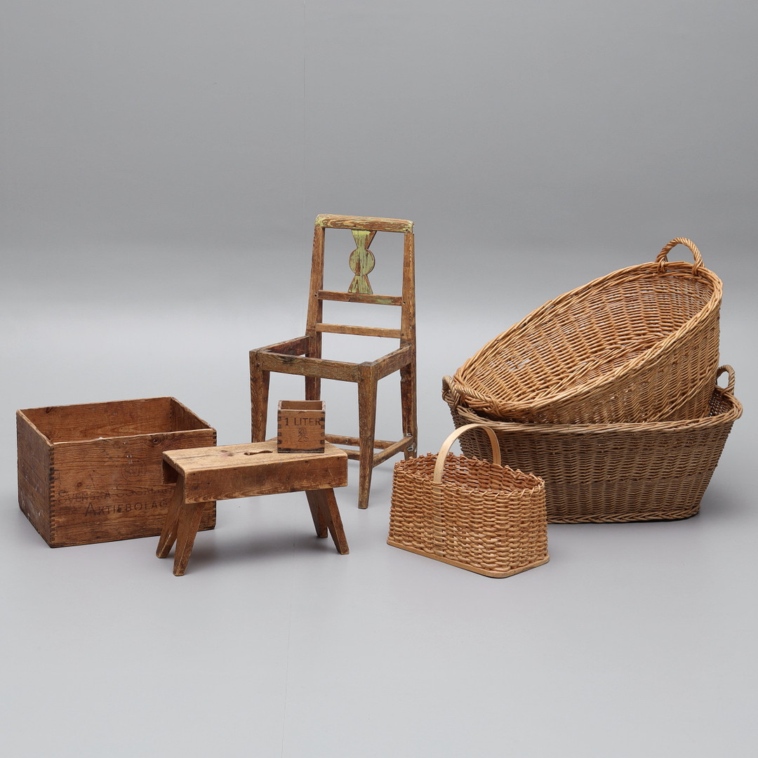 3063588. KÖRBE, PALETTEN, SCHUBLADEN, Sammlung, 7 Artikel.