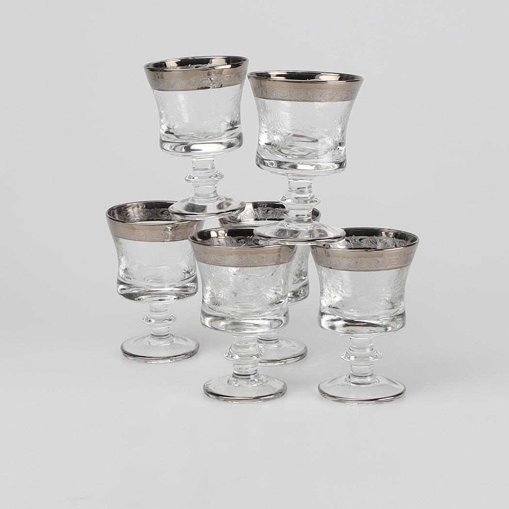 Geätzte Dekoration. Kanten versilbert.